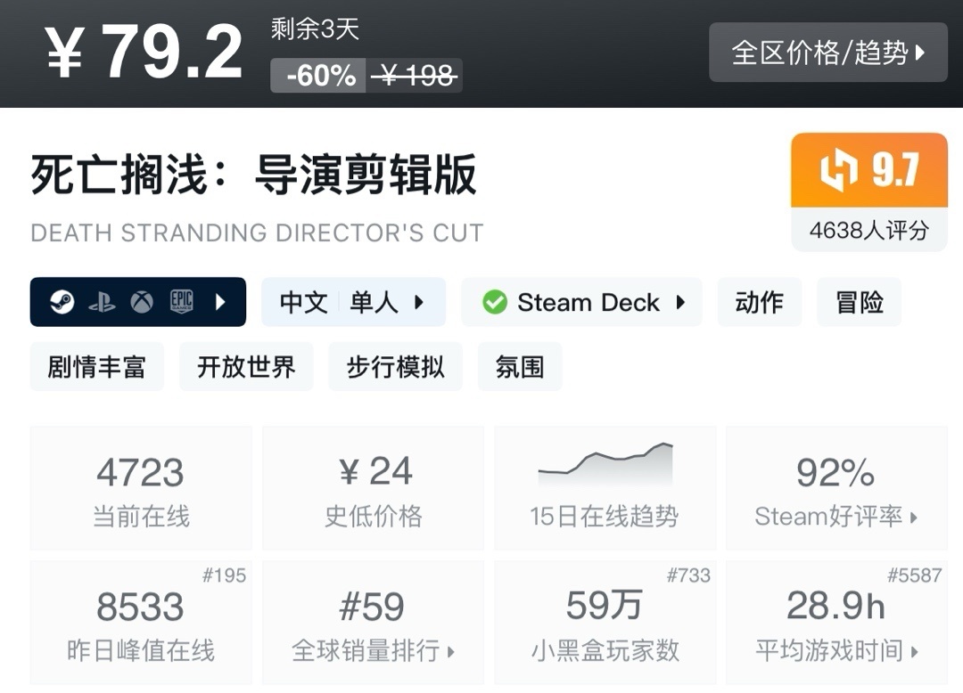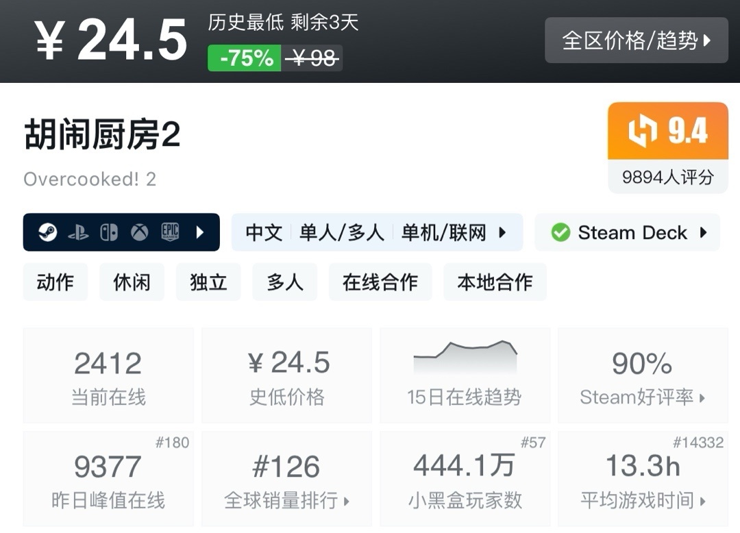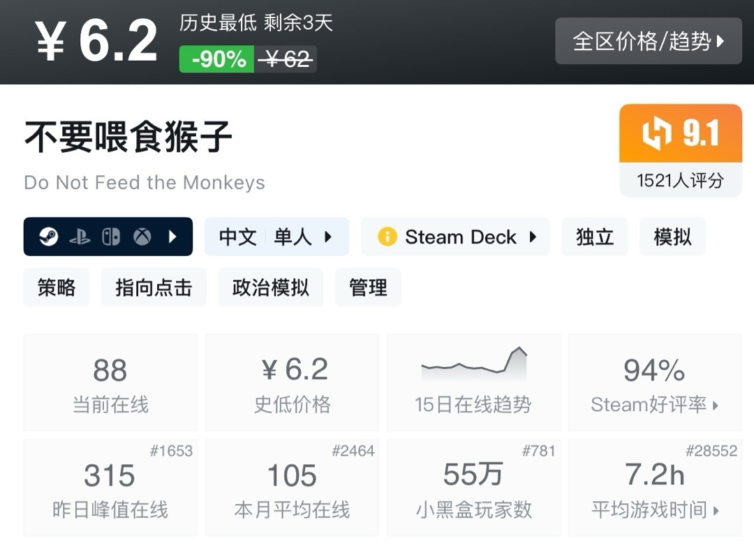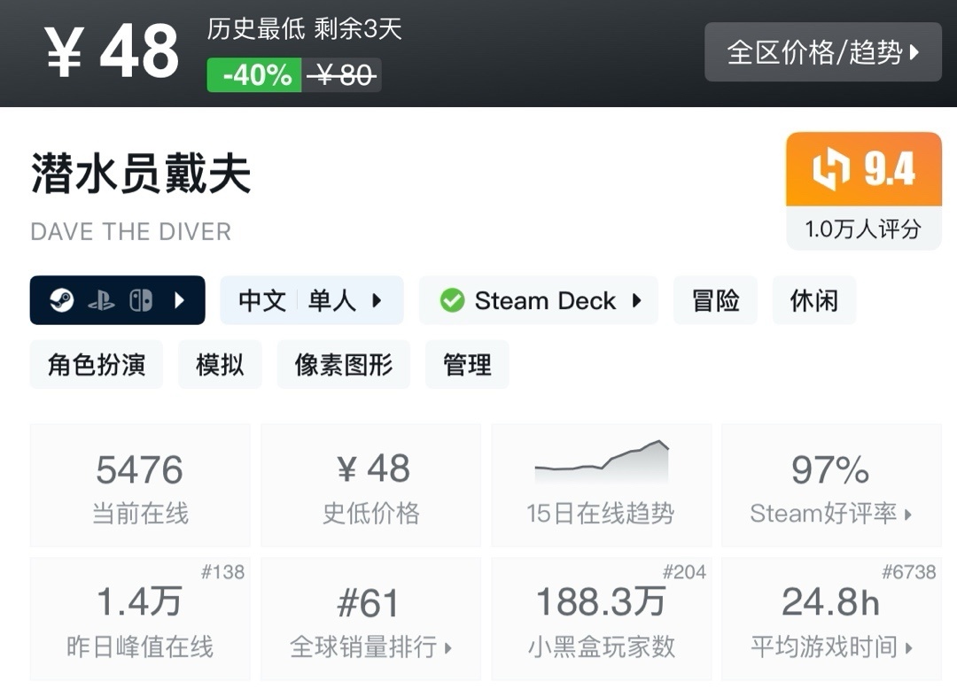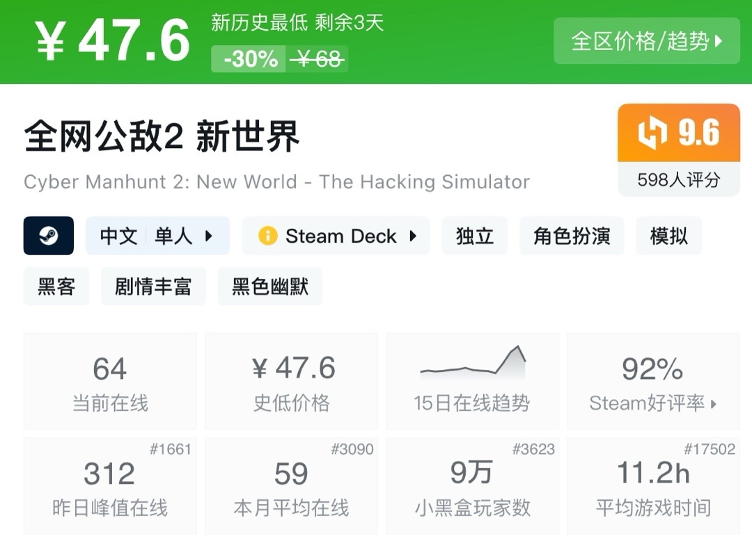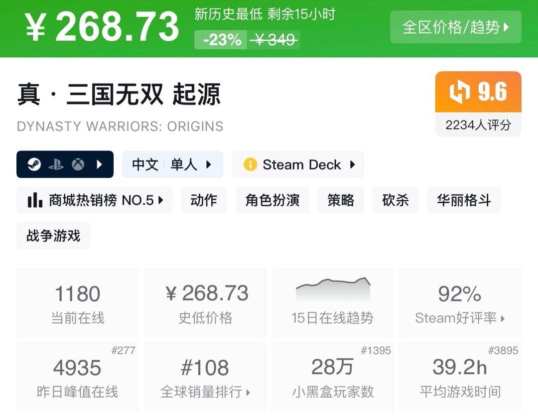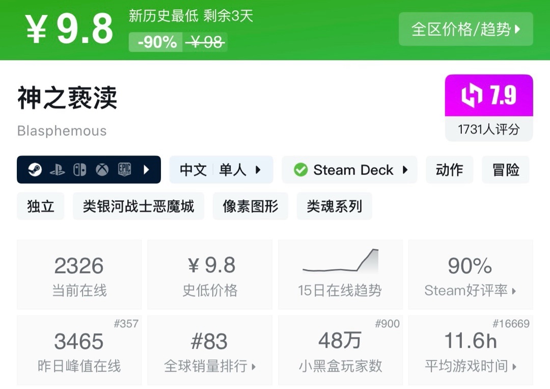 上次周年新史低,最近也是没回复。夏促应该就这样了!不多介绍了生存巅峰!