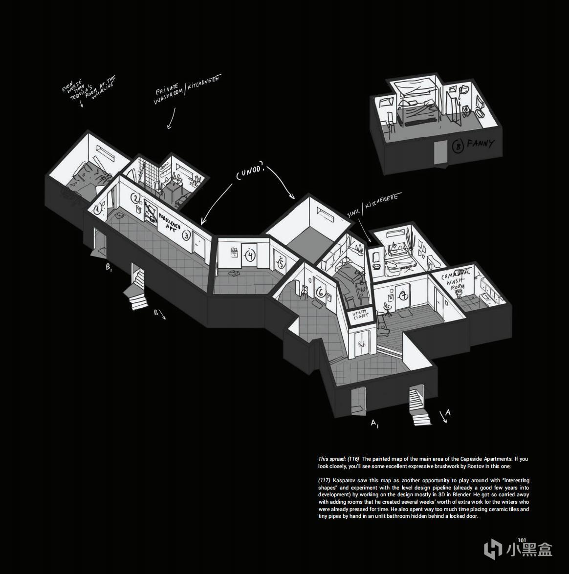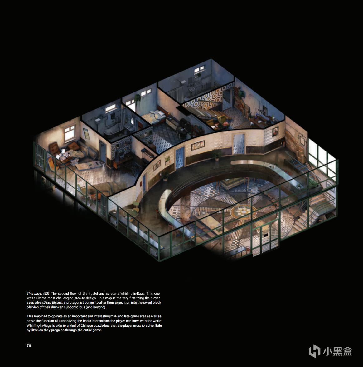 旅館和食堂的二樓,這一區域的設計確實是最具挑戰性的部分。因爲這張地圖是《極樂迪斯科》的主角醉酒醒來後,首先看到的內容。