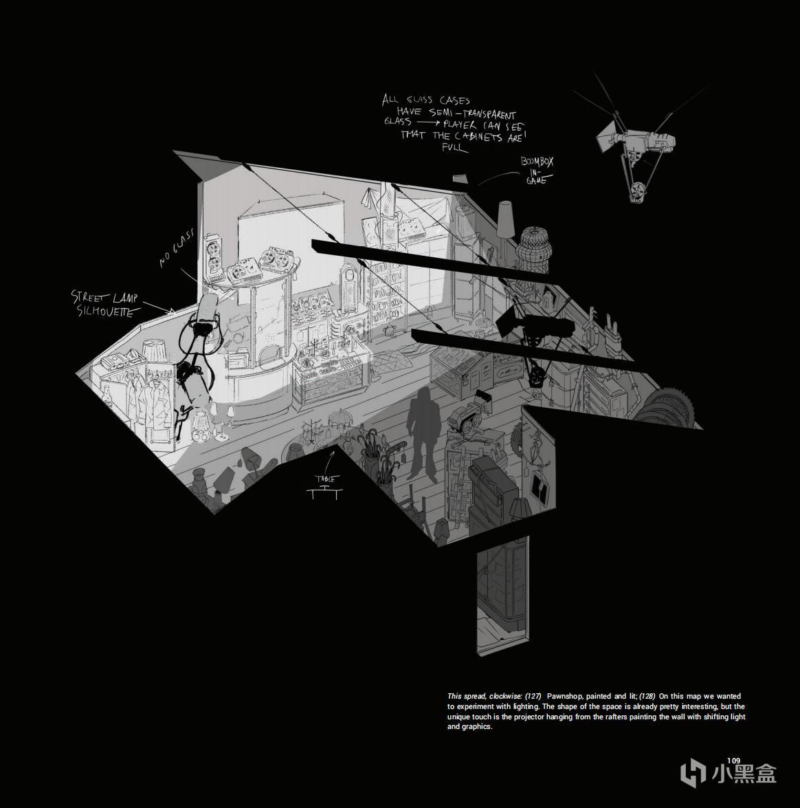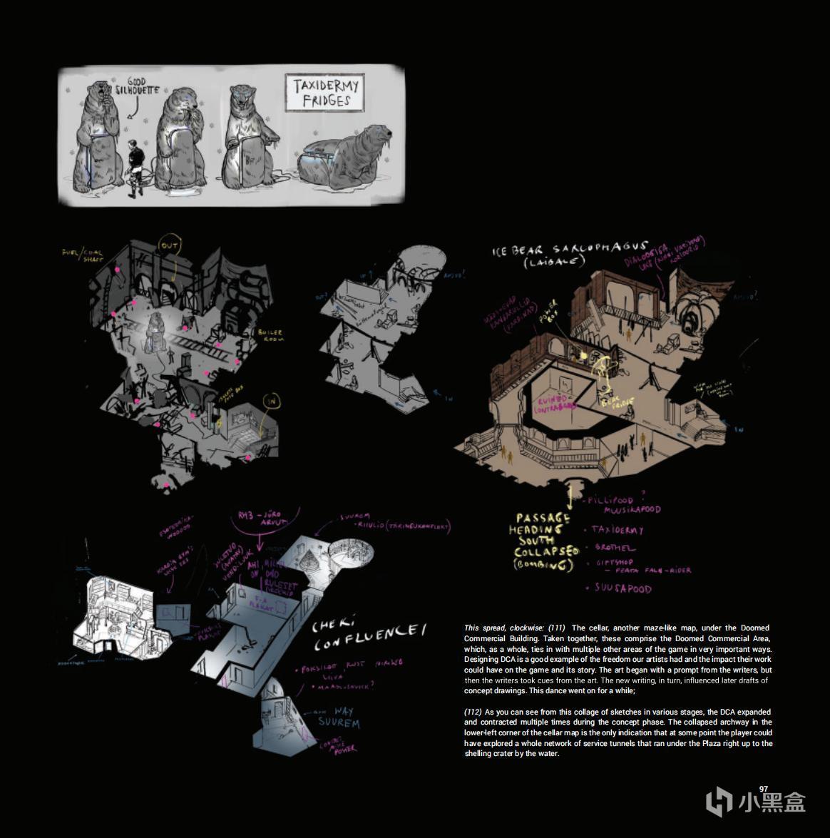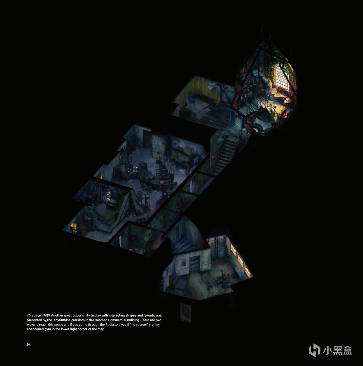 設計商業大樓是藝術家們享有創作自由以及他們的作品對遊戲及故事產生影響的絕佳例證。藝術創作始於編劇的創意提示,但隨後編劇又從藝術作品中汲取靈感。新的文案創作反過來又影響了概念圖的後續草稿。這種創作互動持續了一段時間