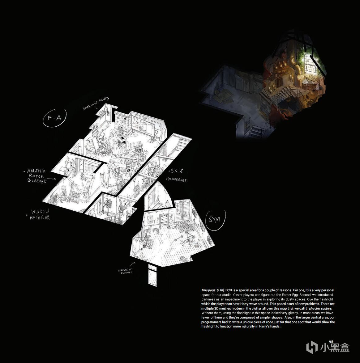 DCB是一個特殊的區域,原因有二。首先,這是我們工作室非常私人的空間。聰明的玩家可以發現其中的彩蛋。其次,我們引入了黑暗作爲玩家探索其封閉空間的障礙。此時需要手電筒,玩家可以讓哈利揮舞它。