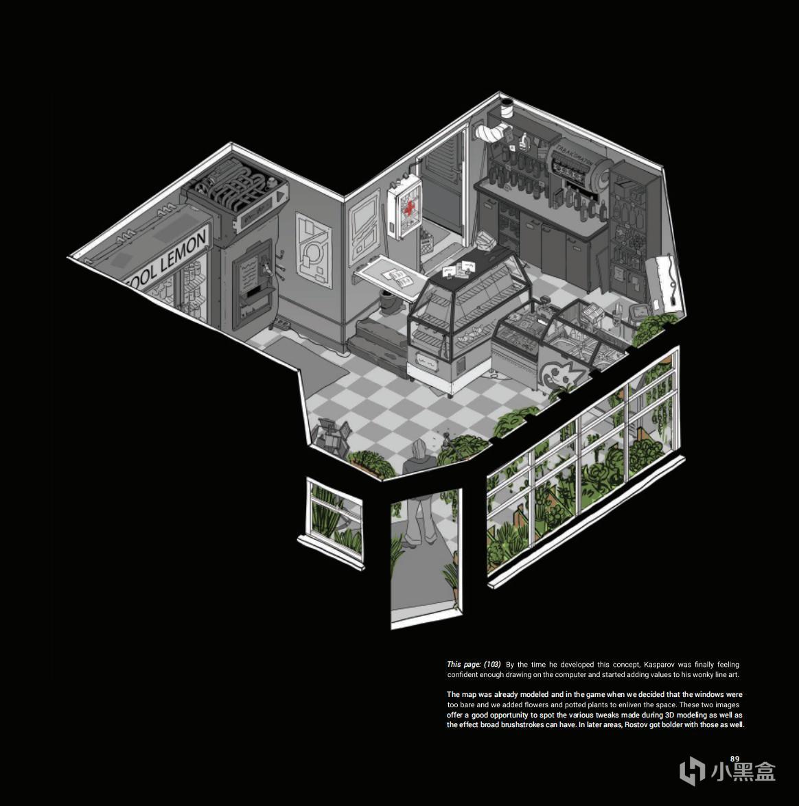 地圖在我們覺得窗戶過於簡陋並添加花卉和盆栽植物以活躍空間氛圍時,已完成建模並置入遊戲中。這張圖片爲觀察3D建模過程中所做的各種調整以及大筆觸效果提供了良好示例。在後續區域中羅斯托夫運用起這些手法也變得更加大膽。