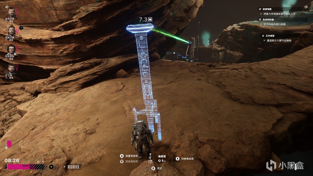 白天在外勘察路線與資源,佈置電塔連接成一塊圖景,再通過特定資源採集器解決生產需求,安排好一天室內的工作活動保證基地運作,夜晚回到船艙慰問一下成員,一天就這樣結束了。
