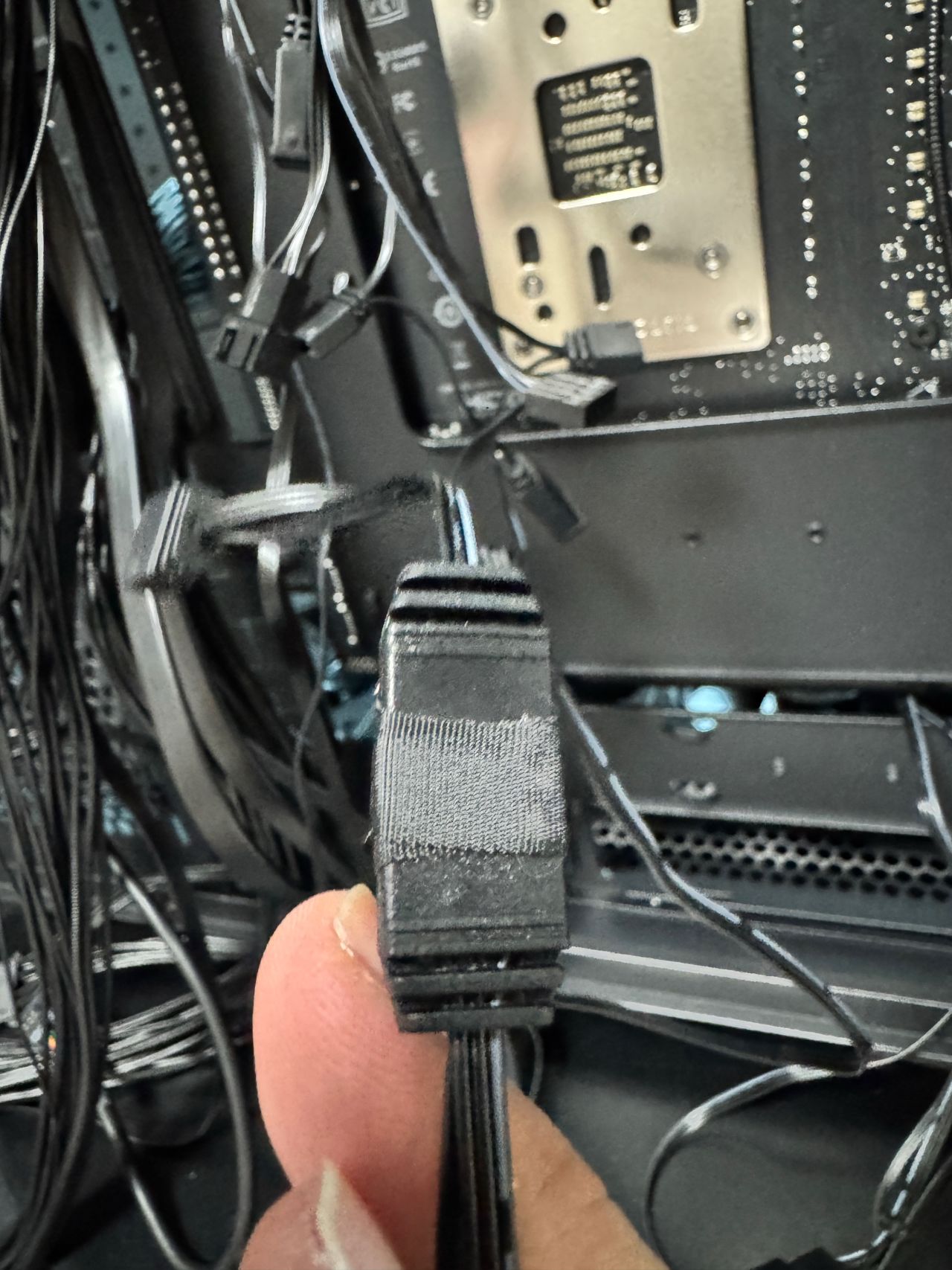 5v3针串联时,如果后续理线太紧,有几率给扯开,这里使用醋酸胶带固定一下。