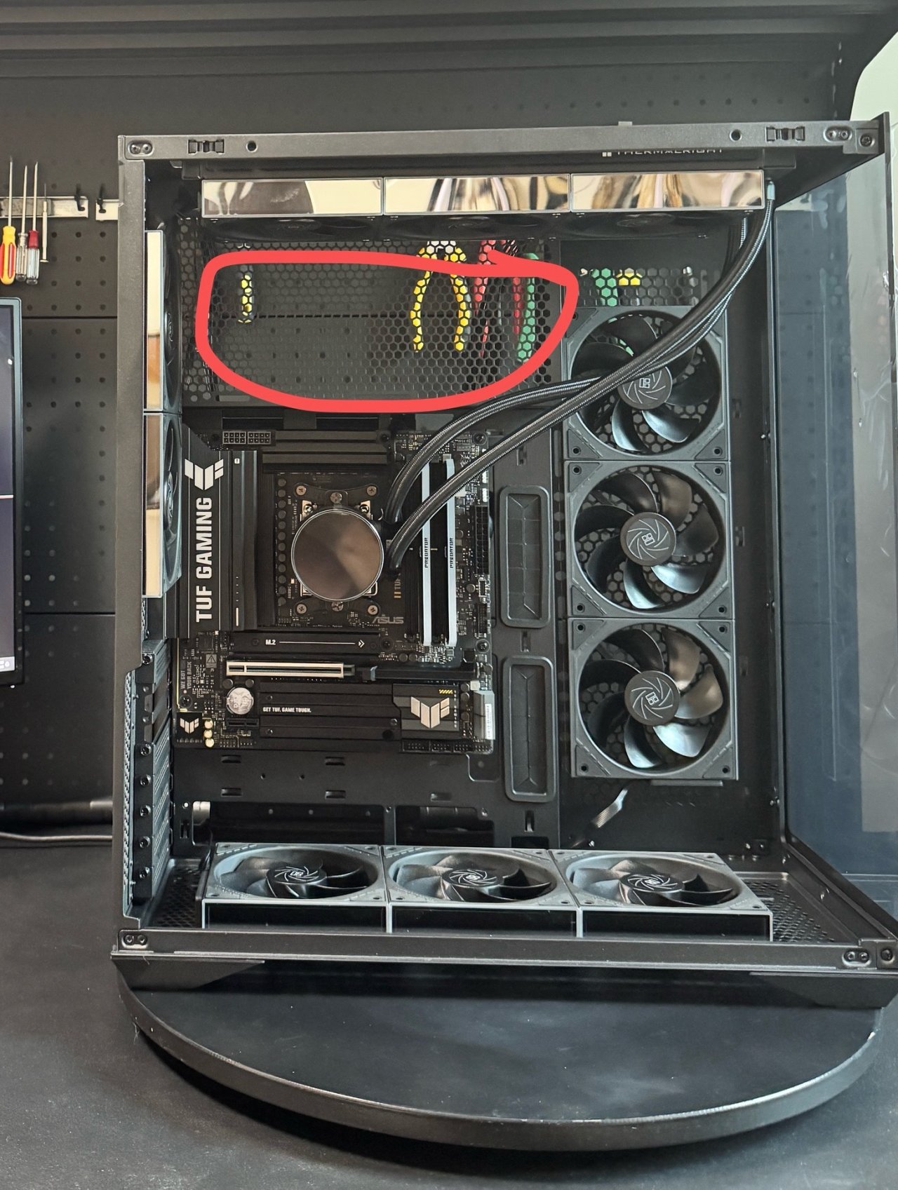 这里说下,为啥水冷管没走左边走的右边,是因为冷排风扇供电模块在左边,看个人习惯,不说对错。