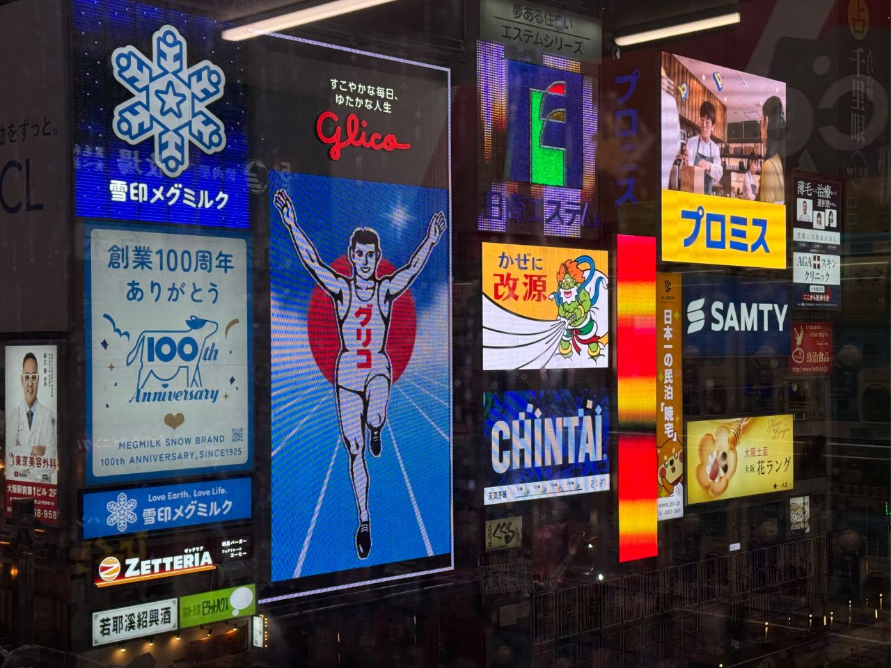 - 吃饭之后就去道顿堀打卡了,在格力高小人那里拍了一些照片,但是因为下雨,人又比较多,拍的效果一般,最后是走到旁边的药妆店的楼上拍了一张。