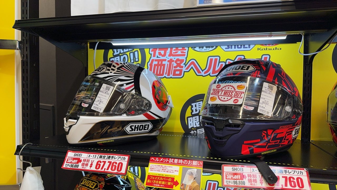 - 作为机车爱好者,我骑车也有四五年了,我的shoiex14头盔也用了好几年了,一直没舍得换,来了日本那必然是要来梅田这边的南海部品逛一逛头盔的。