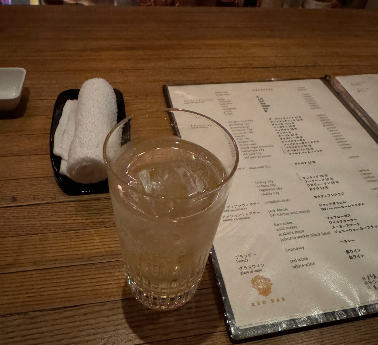 - 等我们回家已经十一点了,楼下就有一家酒吧,叫red bar,进门就是吧台和一条窄窄的过道,是个日式风格的清吧。去的时候人不多,我们三个就各自点了一杯酒自顾自的喝。小姐姐看俺们不说话就主动跟我们聊天,她白天在CK上班,晚上来酒吧兼职,她还自学了一些中文,会说谢谢,是个性格很好的人,等到后面第二次和她见面就有一种老朋友的感觉了。