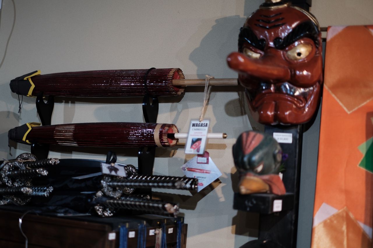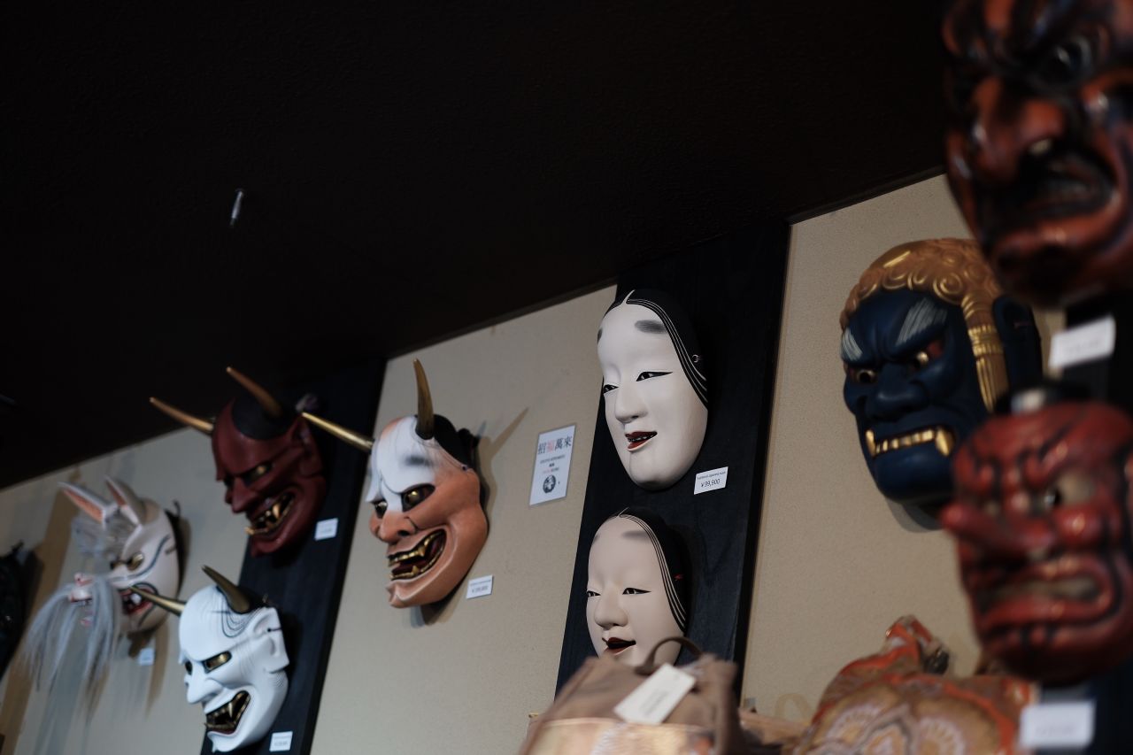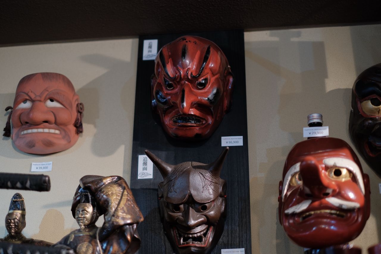 - 下来之后的路上人就变得少了很多,可以在小雨里慢慢感受京都的氛围了,偶尔可以碰到很酷的店,比如下下面的面具店。