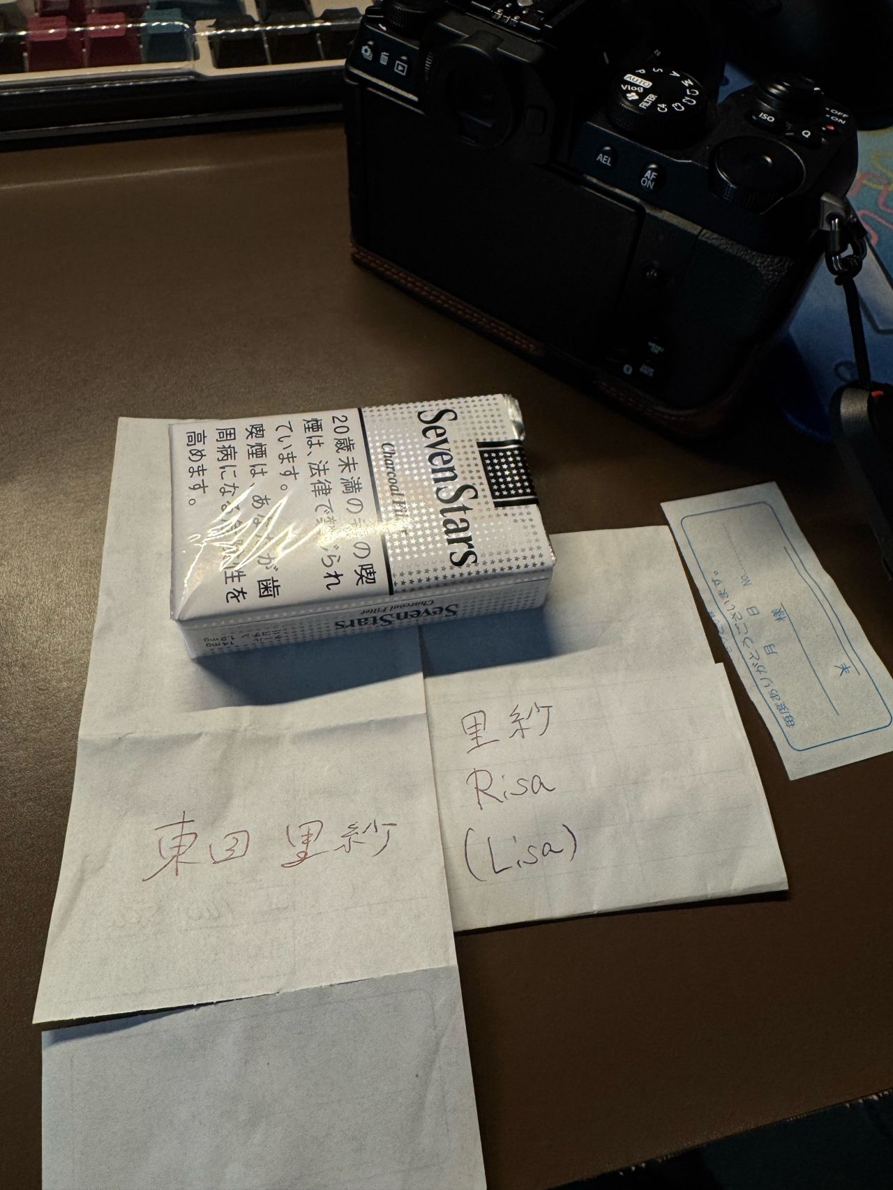 - 最后还是老节目 red bar,今天是第一天那个小姐姐了!可惜她一下子没认出我来!然后我们就交换了彼此的名字 她叫里纱,risa,和我们这边的女士互相交换了ins,她真的是很棒的人,我们一直喝到打烊。出来之后我们站在一家关门的店前,一边看着雨景一边抽烟,真希望时间静止住。抽了一会看到里纱换了衣服下班,我们又一起挥手跟她道别