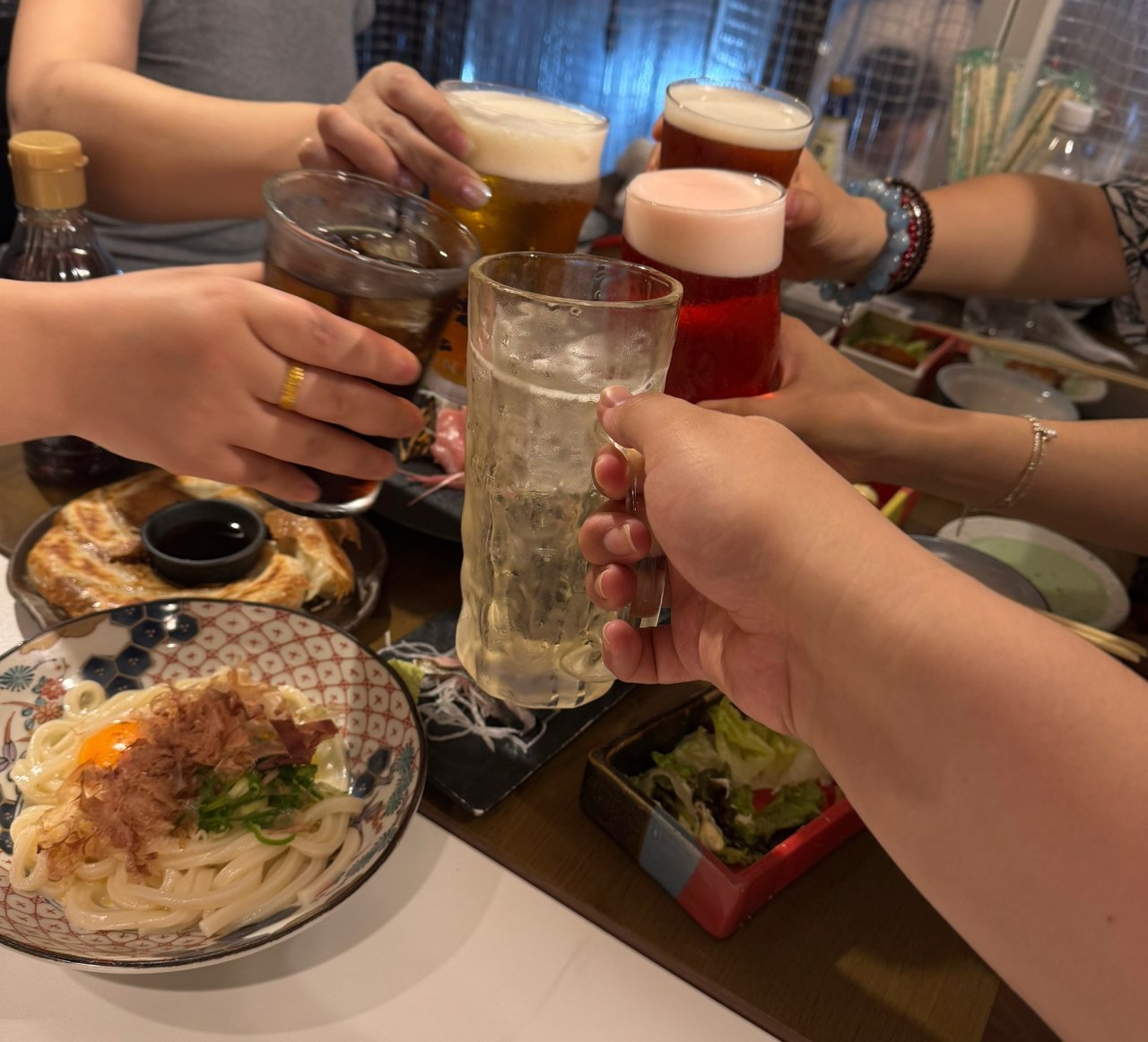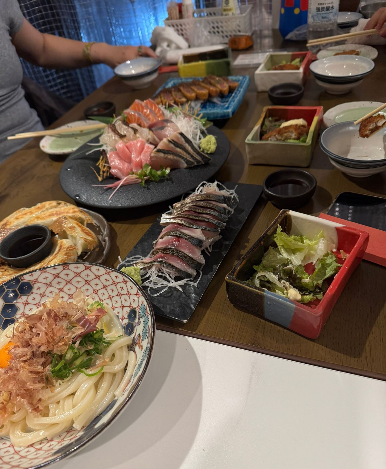 - 购物之后回本町吃饭,本来想带朋友们去喝西瓜酒,但是那家店周末需要预约就放弃了,最后在雨中狂奔二十分钟终于找到一家还在营业且不排队的,外面看很像大排档,门口还支着塑料棚子,菜单也啥都有,意面饺子炸猪排 刺身鸡蛋乱七八糟的,吃了很久,下雨天,和朋友们在一起喝酒真的很开心