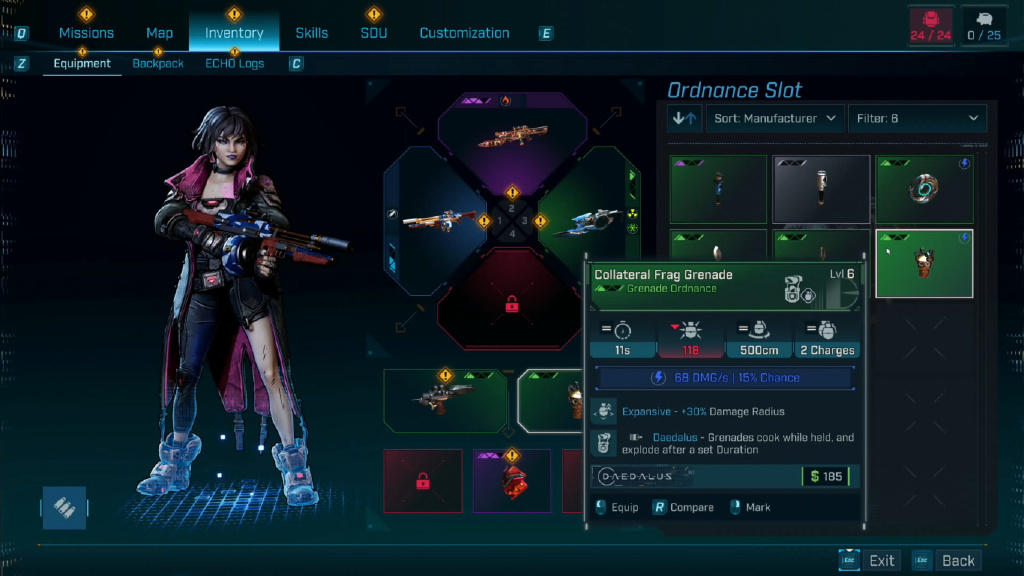 作为刷宝射击游戏,上一部作品它们就声称有上亿把枪,虽然改个配件就算新枪吧,但不可否认的是《无主之地3》的装备系统可玩性非常之强,内容极其丰富,而《无主之地4》的装备系统又迎来了一点更新。玩家现在拥有三个主武器栏位,以及一个手枪栏位,除此之外,手雷、飞刀和火箭发射器这种投掷类武器,统一整合进了炮械栏位,需要等冷却充能。