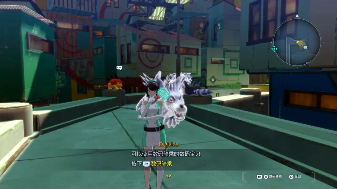 总的来说,城镇的探索体验算得上不过不失,但对粉丝来说还是挺有吸引力的,尤其是当玩家队伍里有可以骑乘的数码宝贝时,玩家可以按下R1键(我们试玩的是PS5版)进入骑乘状态,加快移动速度,沉浸感也随之更上一层楼。
