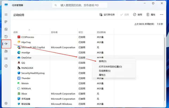 任務管理器裏,左側找到“啓動應用”-右鍵相關應用-“禁用”: