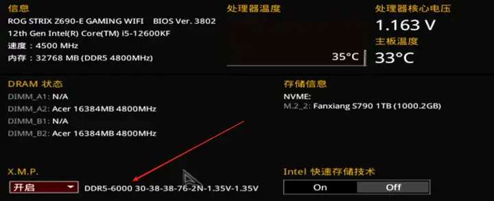 DDR5內存,開啓XMP後會跑到6000(AMD)或更高(英特爾):