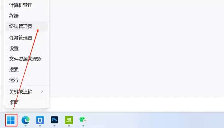 但還是很麻煩,有個一勞永逸的方法:右鍵“開始菜單圖標”-“終端管理員(Windows PowerShell)”