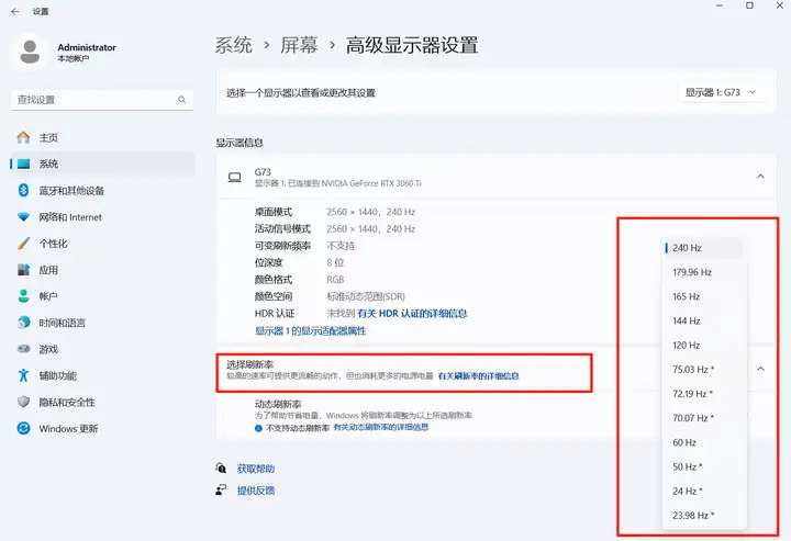 大部分老電腦重裝系統、或新電腦到手後,刷新率會默認以60hz運行,這時你可以調節到高刷: