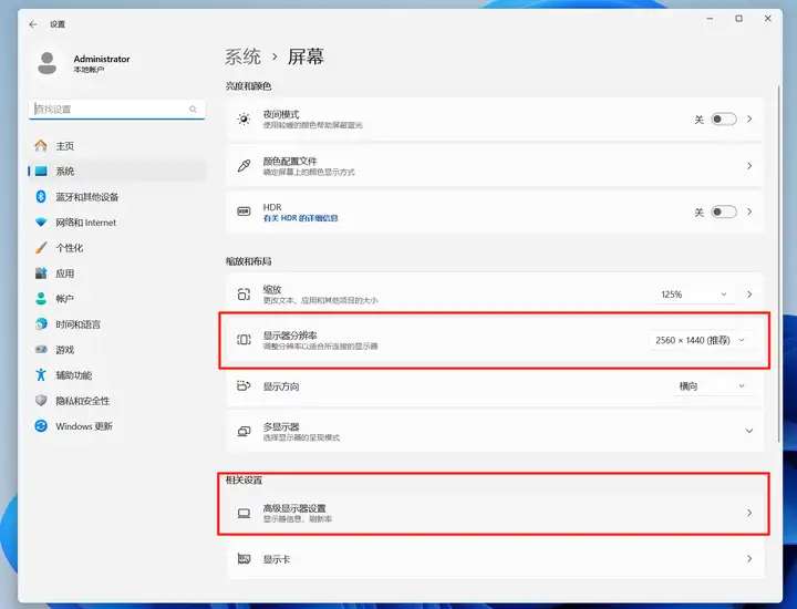選擇“高級顯示器設置”(這個界面順便可以檢查下分辨率是否正確):