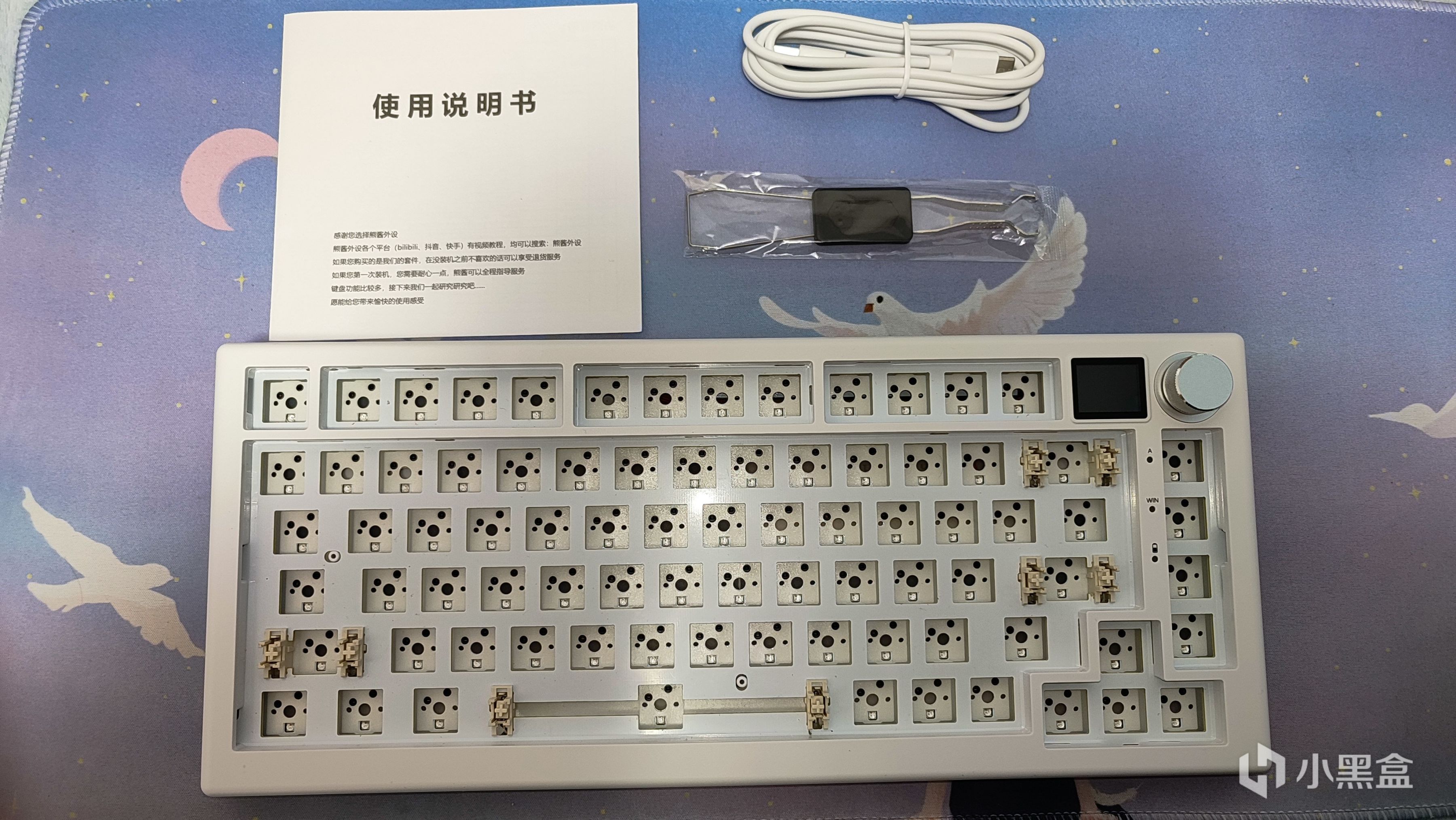這把鍵盤的配件還是較爲豐富的,比我上一次寫過的CIY68好了很多(價格也高了很多),所以到手基本算可以直接用了,只需要插上軸和鍵帽。不過使用硅膠填充的GASKET結構鍵盤實際使用不會太軟彈,所以想要追求軟彈還是得更換成PORON材質棉進行填充。