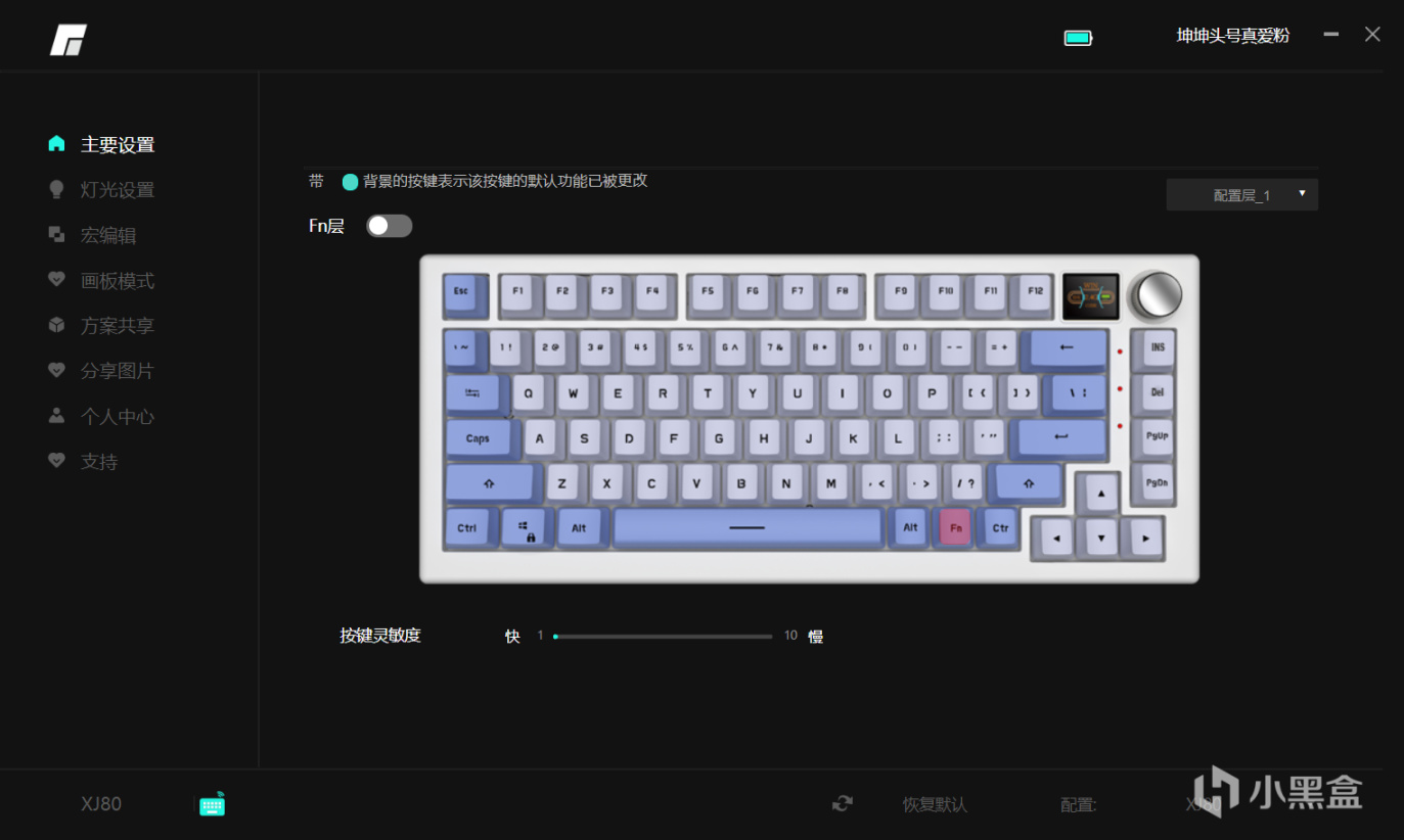 它所搭配的驅動中的設置還是挺豐富的:可以改鍵、修改燈光、編輯宏、自定義小屏幕等,其他都大同小異,所以我們重點來講自定義小屏幕。