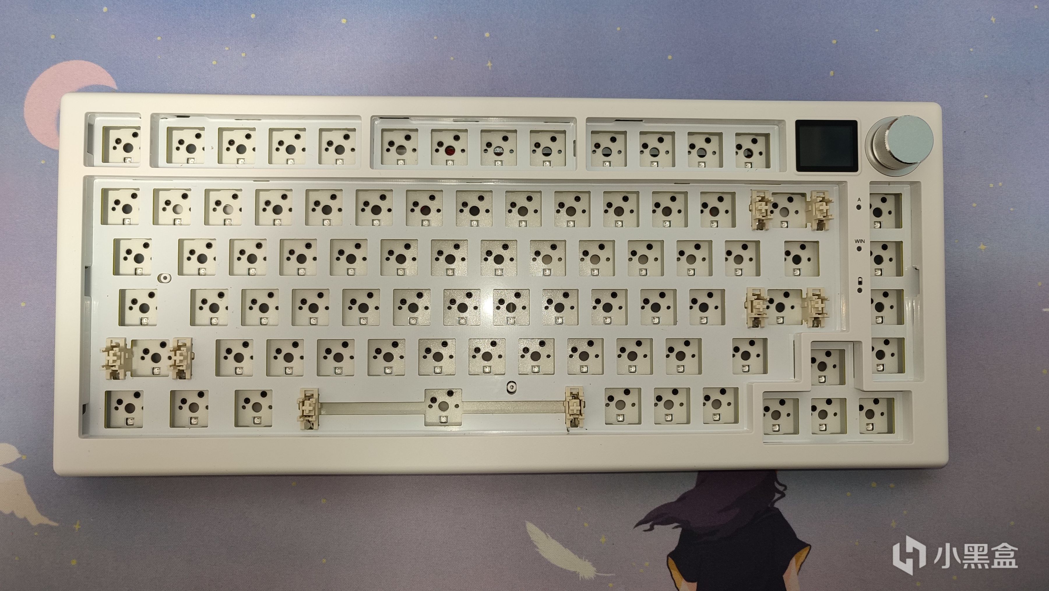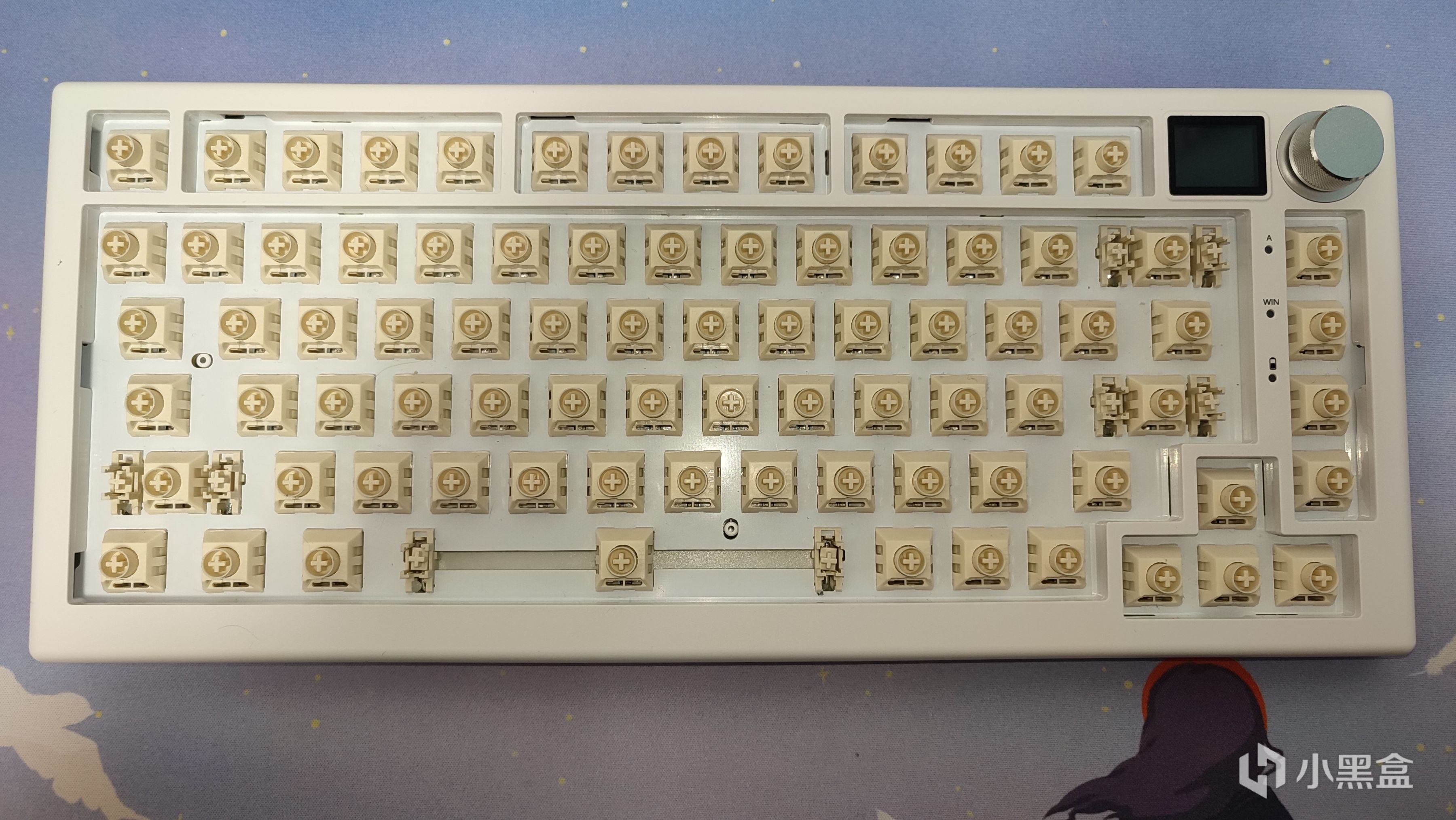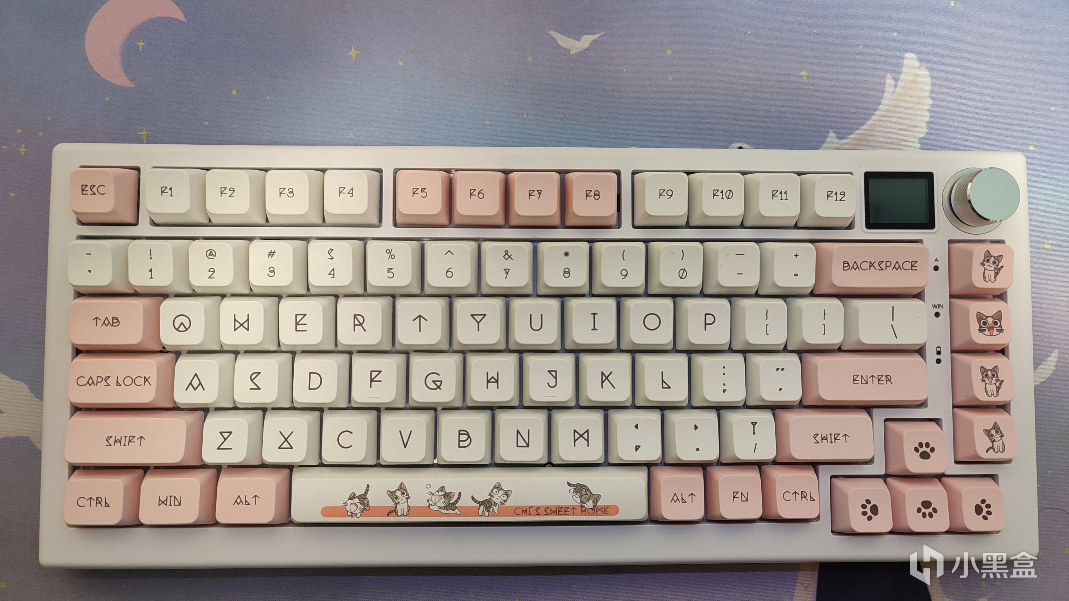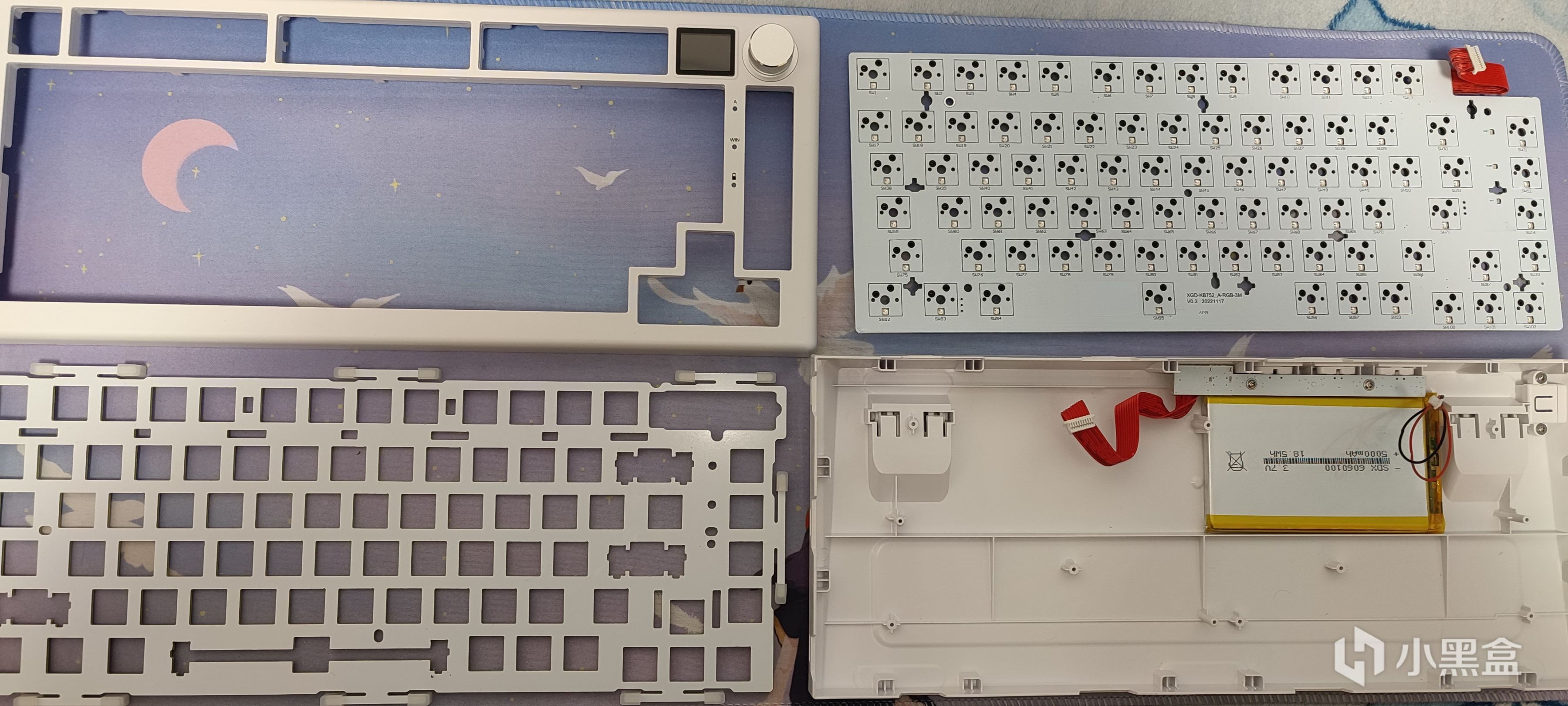 從盒子上就能看到這把鍵盤組裝好後的樣子了,最爲顯眼的想必就是右上角不大的地方還塞了一顆旋鈕一個小屏幕,這裏賣個關子,後面再說。