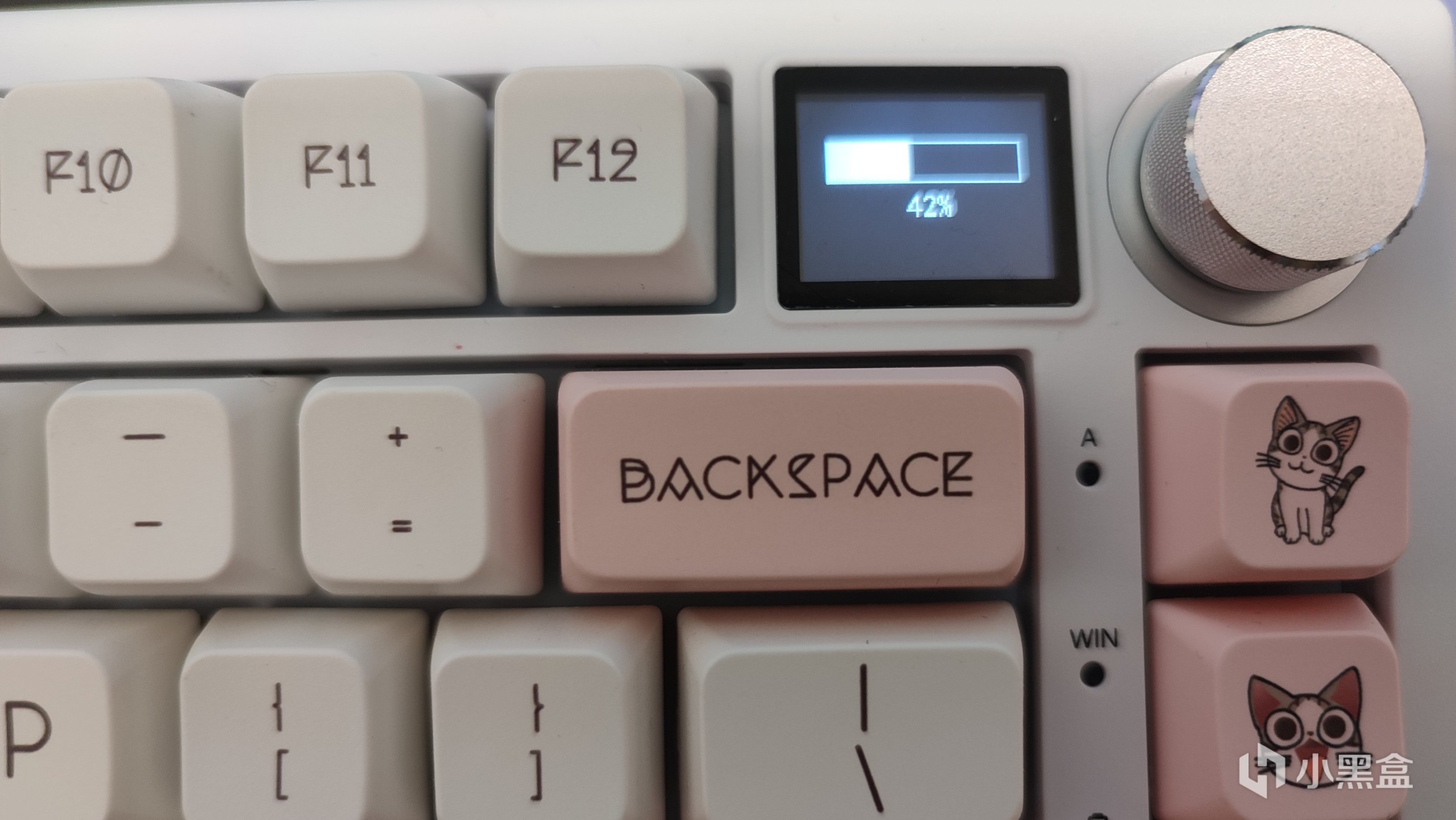 正面看不出太大亮點,非要說的話,就是右上角的那塊屏幕,但顯然這麼好的東西我開頭不會講,那就從鍵盤其他方面找亮點了。四周都做了倒角處理,這點非常好,讓這把鍵盤看起來十分的飽滿圓潤,並且不會出現被劃到的情況。這個旋鈕材質是金屬的,並且四周做了防滑處理,使用起來只需要一根手指就能輕鬆使用,缺點可能就是按下去手感太重了,並且每一個刻度都會增加(減少)4格音量。