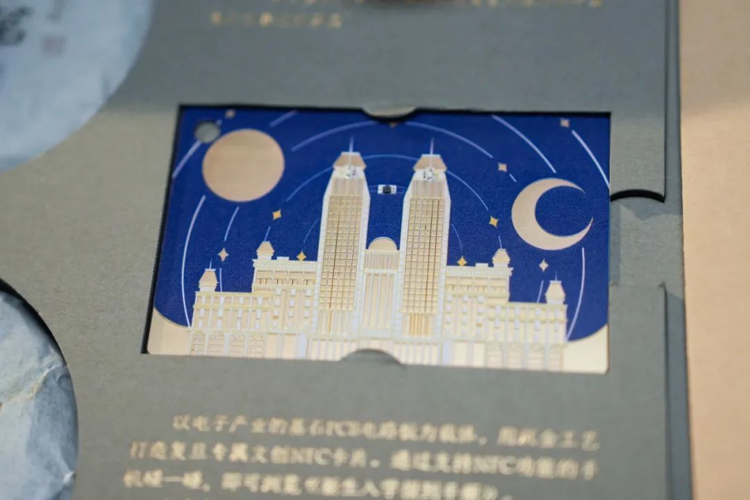 两饼茶砖旁,是一枚复旦专属文创NFC卡片。