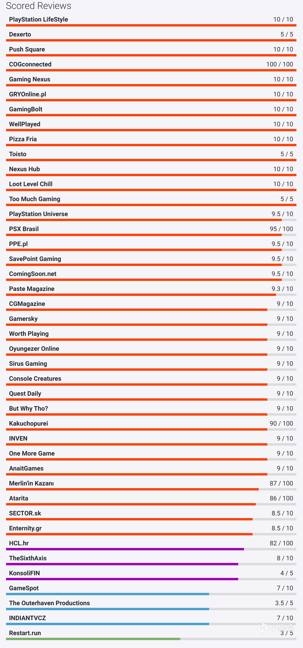 截至發稿前,Metacritic(PS5)收錄 95 家媒體,均分 90 分。其中87個好評,4箇中評,0個差評。