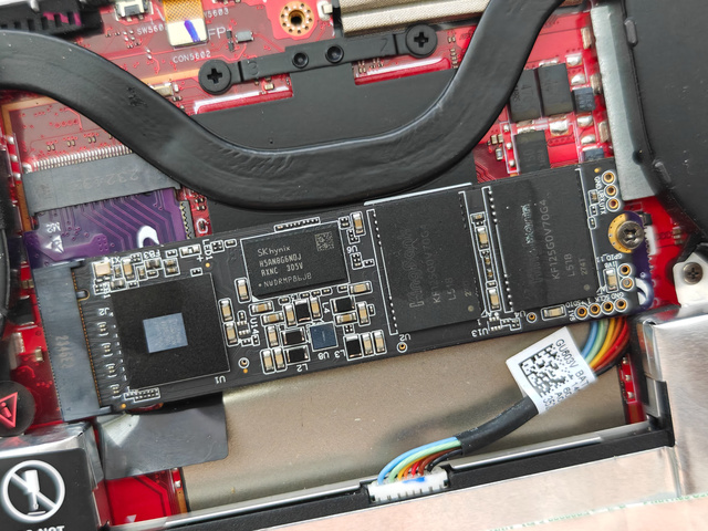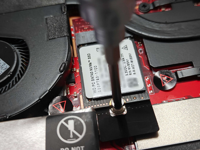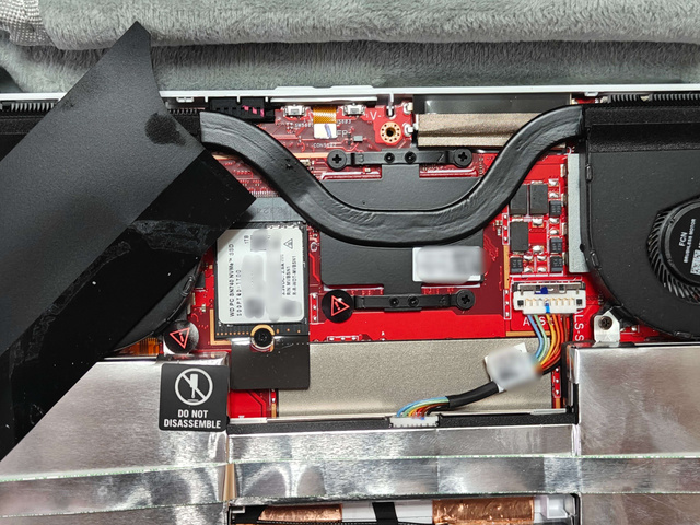 接下来,请小心地撕开位于中间黑色的屏蔽贴纸,然后就可以看到ROG Ally 掌机内部的2230硬盘。