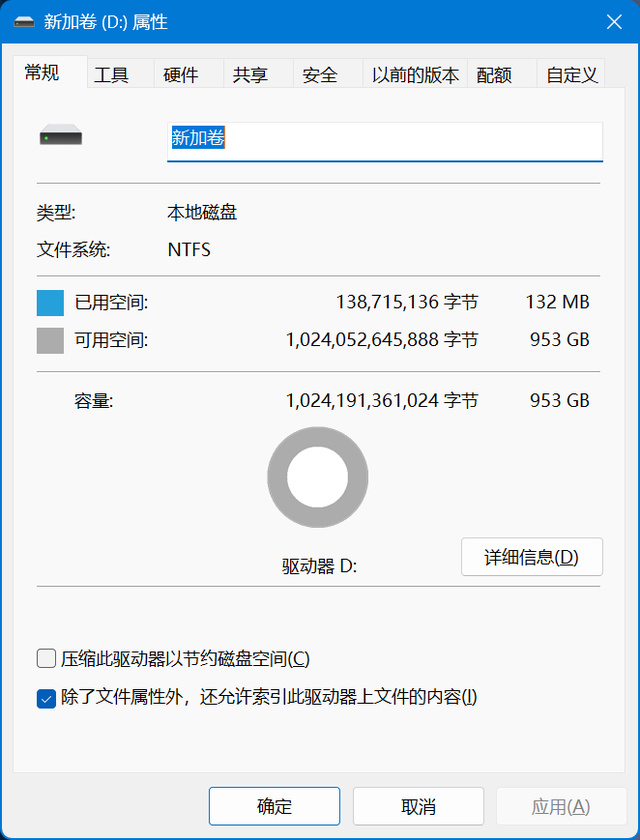 这款金百达 KP270 1TB 固态硬盘在格式化后显示容量为 953GB,这与标称的 1TB 容量相符。或许你会疑惑,为什么格式化后的实际可用容量会比标注的小一些?其实,这种差异源于存储容量计算方式的不同。