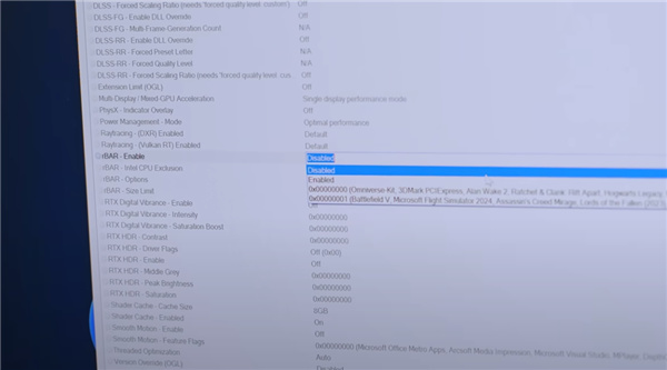 NVIDIA Profile Inspector里将rBAR参数设置为开启(Enable),同时修改下方的两个参数: