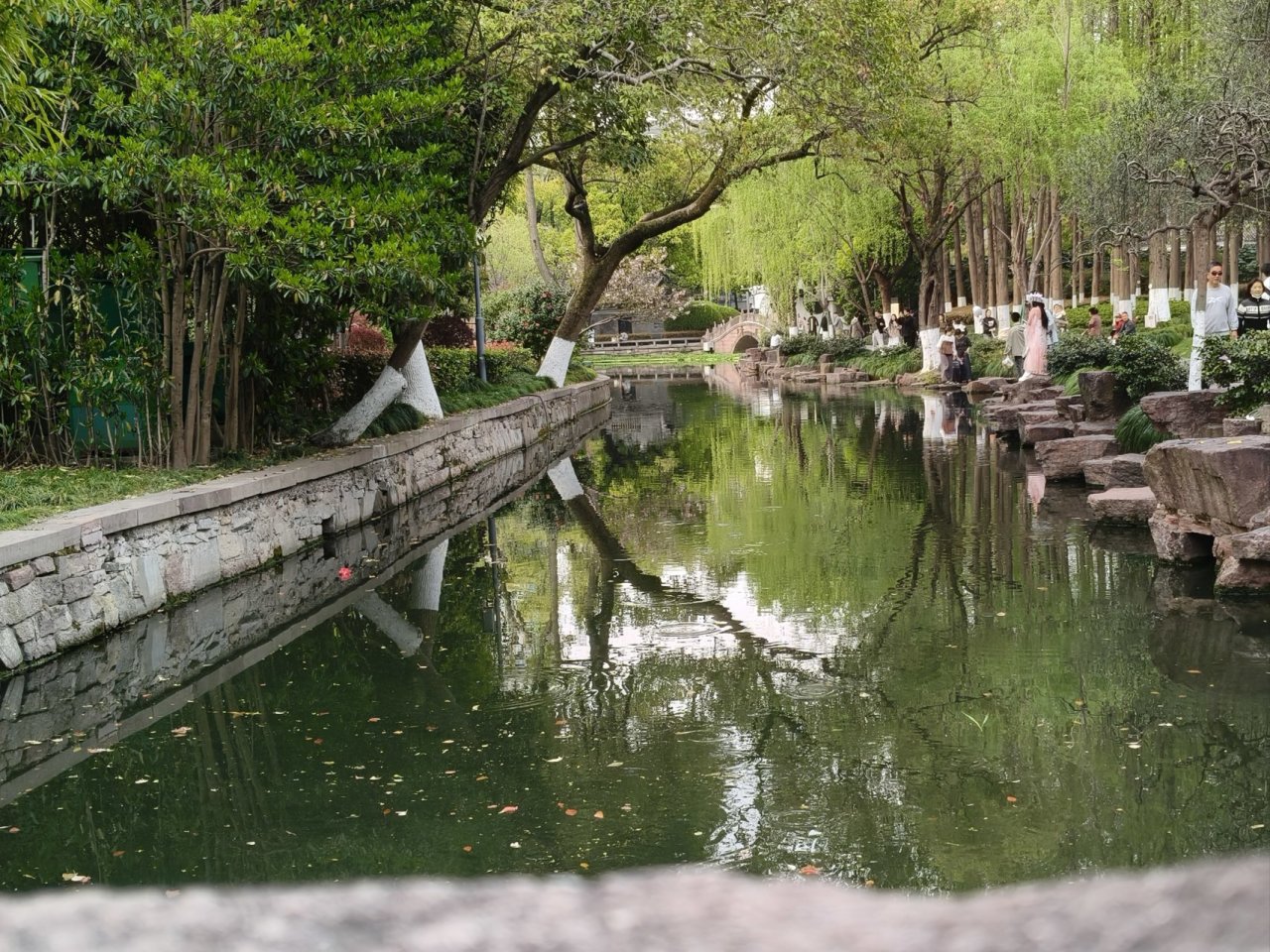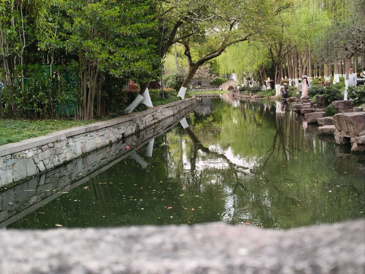 他们走后,我站在泉边没动。泉水清得能看见底,几片柳叶漂在水面打转,偶尔能瞥见池底躺着几枚泛绿的硬币。这一带留学生真不少,刚才就听见身后两个中东模样的男生用带着口音的英语争论着什么,卷舌音在热空气里格外明显。树荫下几个韩国留学生正轮流以泉水为背景自拍,背包上别着Q大的校徽。