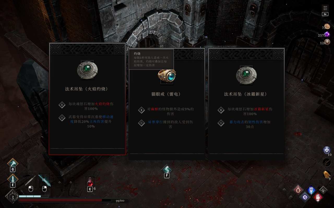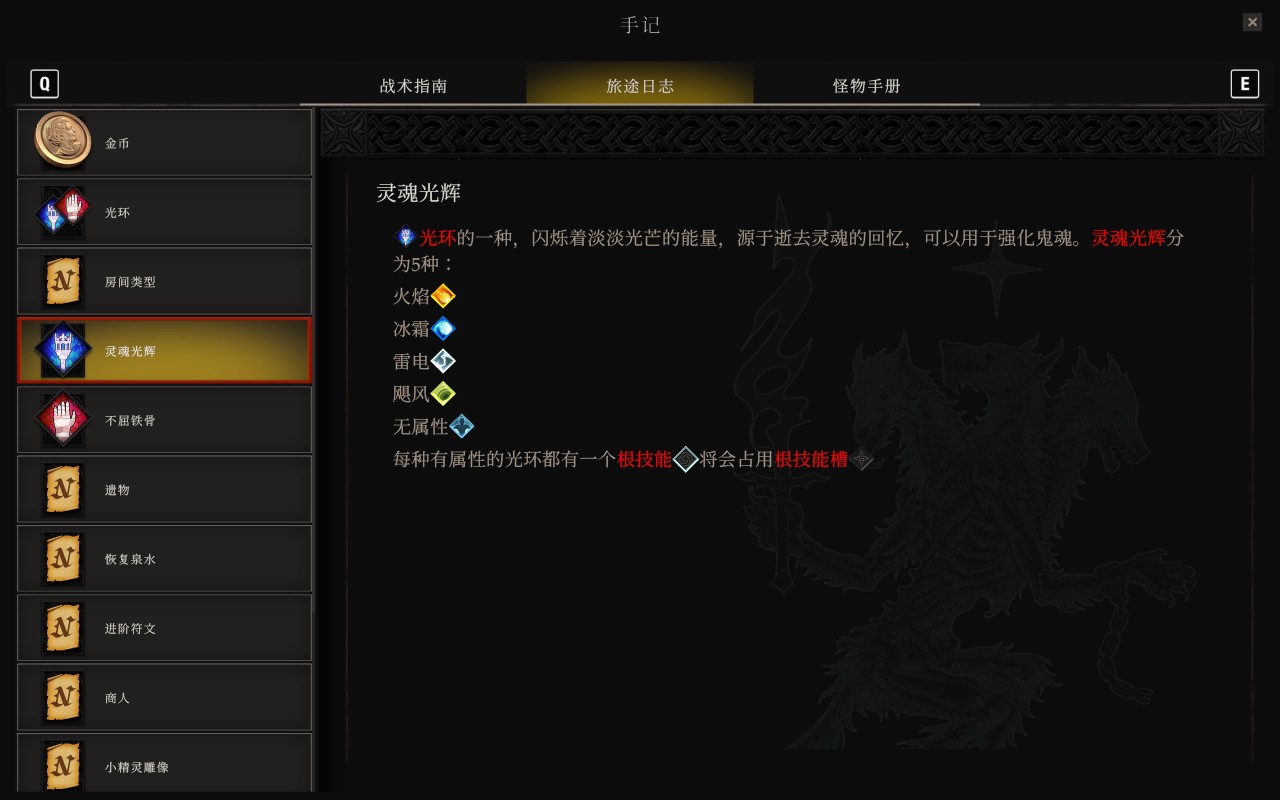 而《冥界契約》雖然沒有像《哈迪斯》一樣將構築綁定在動作之上,但是設置了一個「根器」的限制(這波是致敬《黑神話》了),簡單來說就是:玩家第一次選擇的屬性光環將決定之後的流派方向,並且不可逆!這可能要比《哈迪斯》的流程更加單調,不過雀食讓玩家不用在構築上花太多腦筋,因爲開局的屬性方向就已確定,後續無非是針對一些小詞條進行優化。