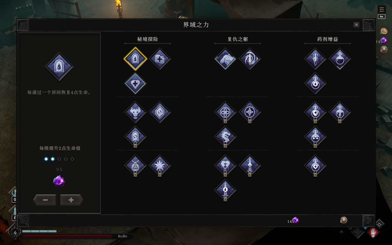 本作另一個我覺得可能會讓大部分玩家感到不適的點,應該是過於冗長的局外養成——或者你可以直接理解爲目前的數值獎勵有問題,單局收益對局外數值的反饋有些過低,並且在養成面板裏似乎並沒有直接的攻擊屬性加成,而是要稍微繞點遠路。