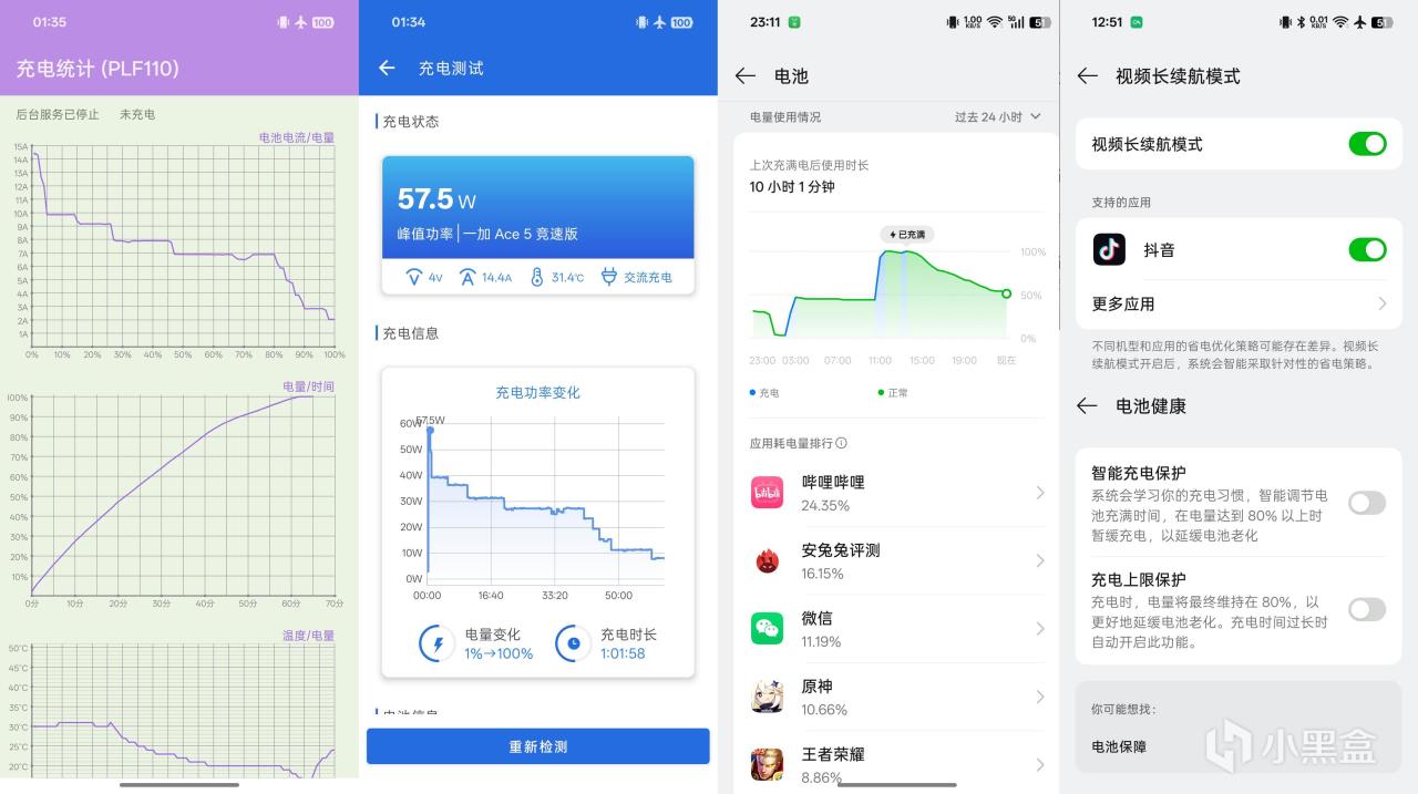 全程智能刷新率、50%亮度、50%音量、单卡开启5G、连接Wi-Fi下,进行如下续航测试。 1小时30分钟长视频(哔哩哔哩) + 1小时30分钟游戏(原神、王者荣耀全高) + 1小时信息流App(15分钟知乎、15分钟微博、15分钟小红书、15分钟酷安) + 30分钟短视频(抖音) + 30分钟音乐外放 + 15分钟高德导航 + 15分钟微信视频 + 15分钟微信语音 + 15分钟微信聊天朋友圈 + 10分钟电话通话 + 5分钟淘宝购物 + 5分钟美团 + 5分钟1080p@60fps视频录制 + 5分钟拍照,共计6小时30分钟,剩余电量51%。