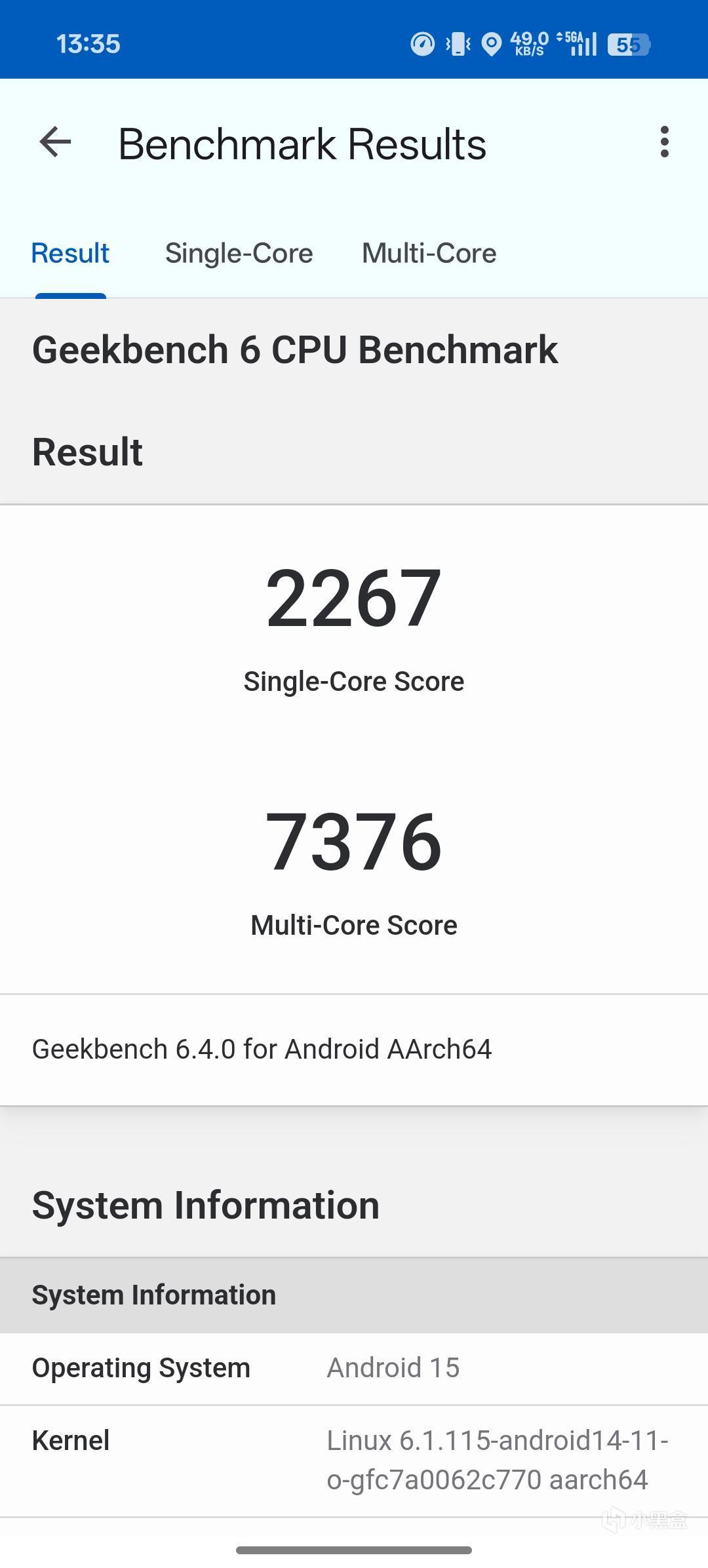 先跑分一波看看,CPU部分使用Geekbench 6.4.0测试,单核2267,多核7376。