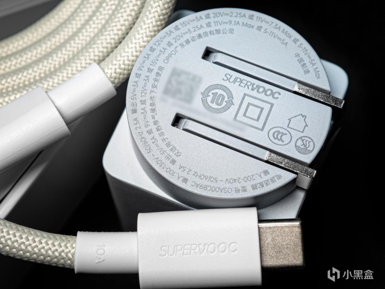 这套充电套装包含100W小方瓶充电器和10A的SUPERVOOC双头USB-C数据线,兼容最高100W的SUPERVOOC和65W的PD。