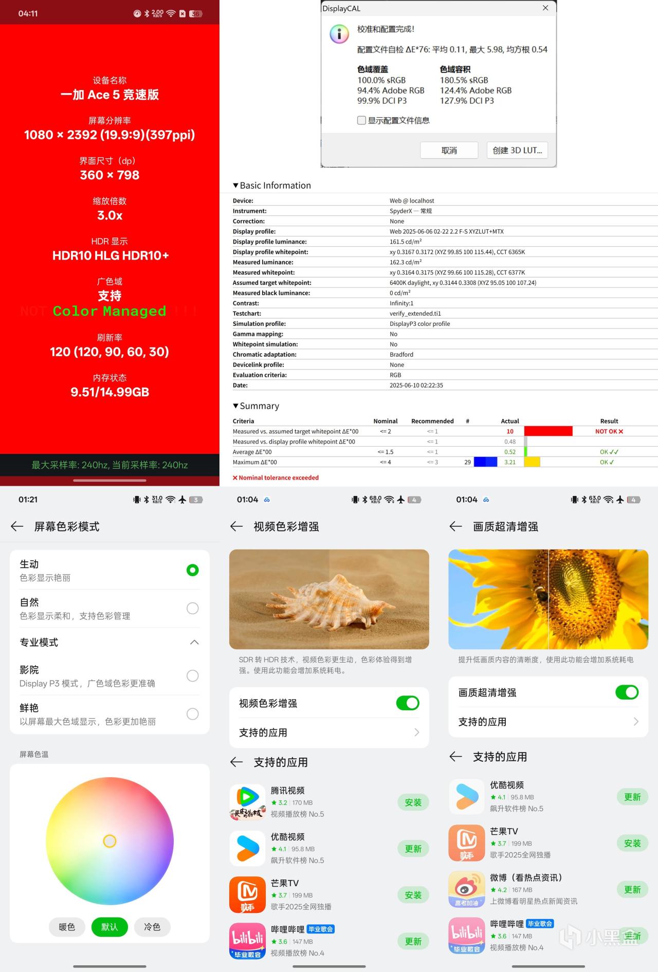 基于O1超感画质引擎支持了视频色彩增强和画质超清增强,支持图中这些App。