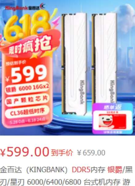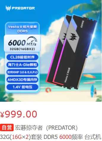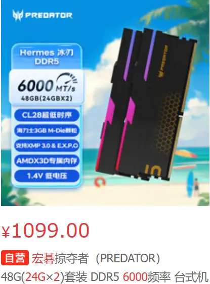 若你预算充足、正在看海力士的16G*2 ADIE颗粒内存,那可以考虑一步到位——上到24G*2的MDIE颗粒内存。价格高100元,但多8G容量,而且性能基本持平!