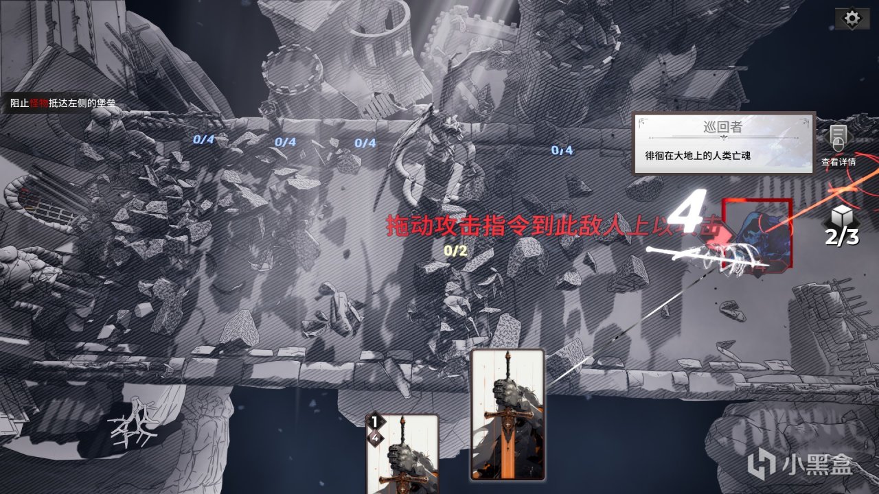 游戏玩法很简单:抵挡一波又一波的敌人从右向左的进攻,不让任意一个敌人进入到我们最左边的城池就算胜利。至于怎么赢,那就要看我们的卡牌构建了。