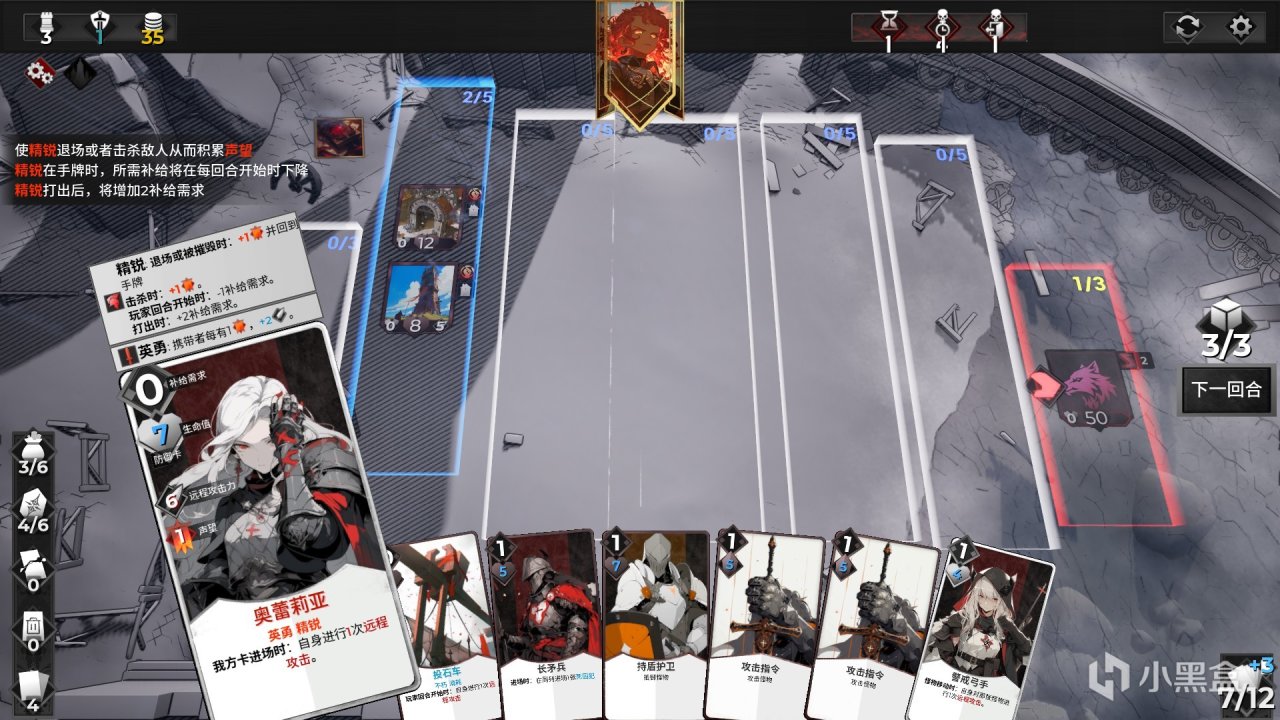 我们的战场就在前线开始,而这个前线被分割的泾渭分明。一共七道战线,根据地理环境的不同,可以承载的卡牌数量也不相同。需要注意的是,敌人占领战线以后我们就不能在被占领战线上放置卡牌。每回合我们都会获得固定的行动点数,通过行动点数我们可以使用这些卡牌进行布置和防御。