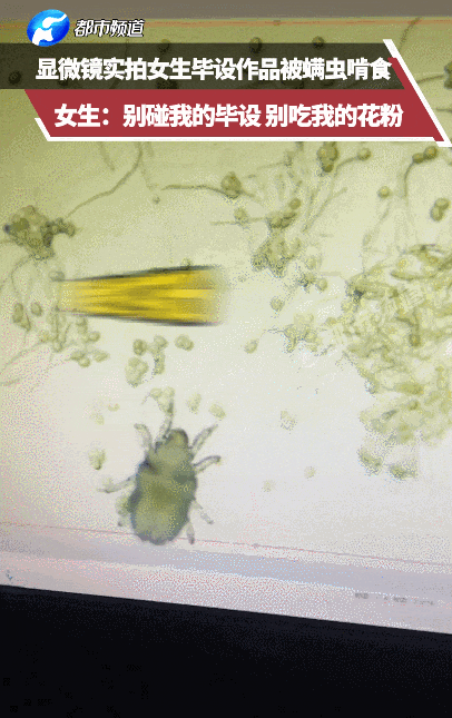 6月20日(发布)海南。女生崩溃发现在显微镜下,自己精心准备的“毕业作品”正被几只螨虫大快朵颐,急呼:“别动我的毕设,别吃我的花粉!”