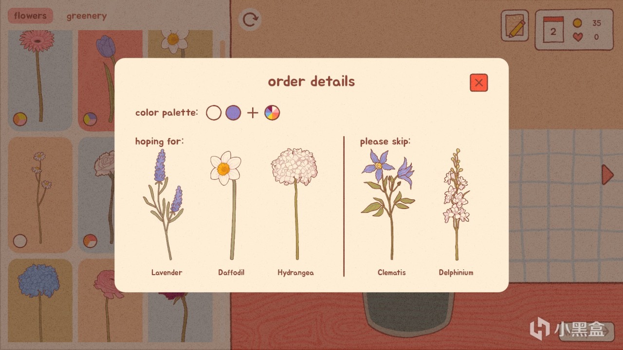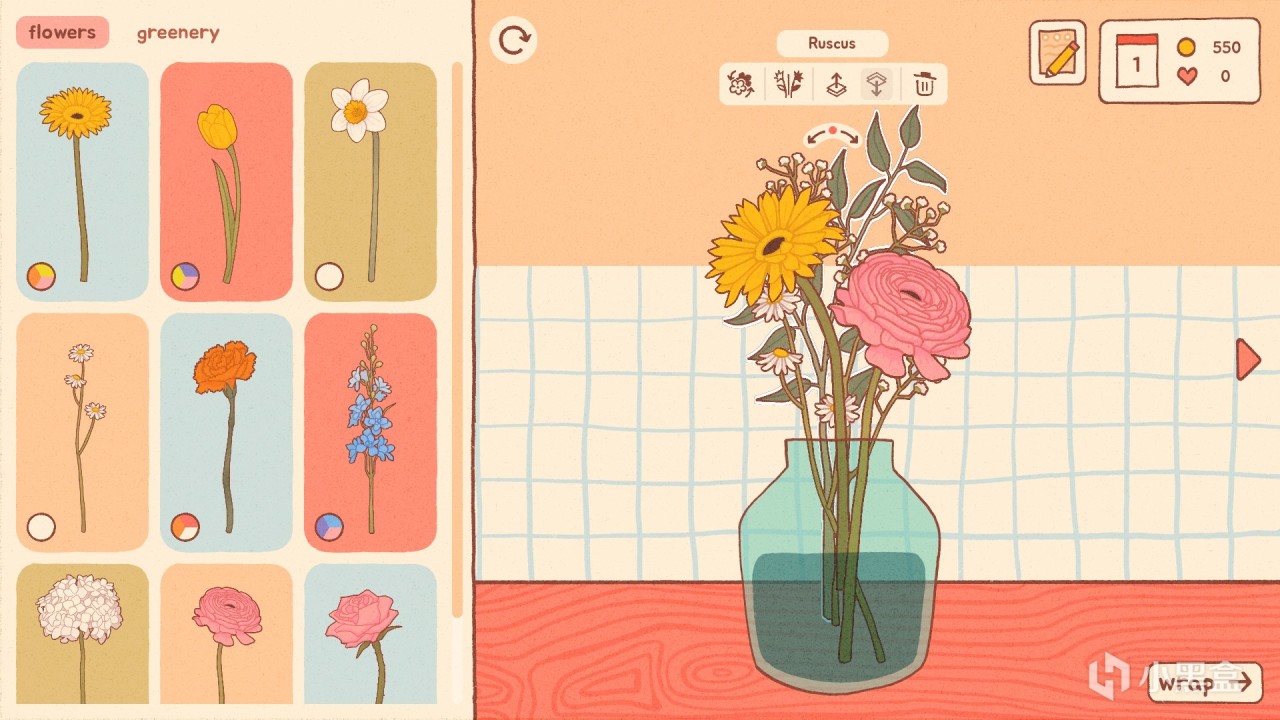 每天会有客人来店里说想要哪几种花,喜欢什么颜色,以及不想要哪种花或颜色,只要按照需求搭配成花束交给顾客就能挣钱。不用考虑花费,只要符合要求,摆一支或者十几根叠在一起的费用是一样的,因此大可每一单都任意多搭配一些来让花束更美观。赚的钱还能解锁新的花种类和颜色,这才是真的放松身心修身养性。