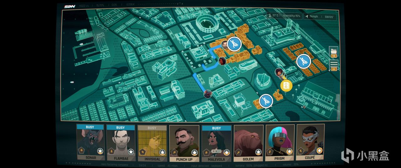 主角是一位类似钢铁侠的高科技装甲超级英雄,在一次意外后既损毁了装甲自己又受了伤,于是以凡人之身加入了超级英雄的组织中心,每日的任务是作为一位办公室员工在后方对外勤的各种超级英雄们进行调度,比如上树救猫就派敏捷高的,陪同名人参加活动需要魅力高的,制裁劫匪当然得派力量强的诸如此类,各种突发事件都有时间限制但派出去执行任务都得花时间,因此难免必须在没有合适人手的时候纠结到底派哪个不那么合适的人去处理更合适。