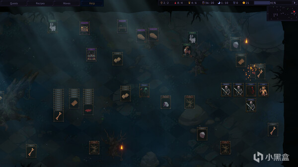 同样是卡牌,就放在一起说吧。这款是基于《堆叠大陆》的玩法,主角是一个吸血鬼(有自己一张卡),在夜晚时需要伐木和攻击老鼠来获取木材,血,骨头,用这些材料能搭建祭坛召唤骷髅兵,随后就可以逐步发展装备和科研来强化自己和亡灵军队。每到白天时自己需要躲进棺材里躲避阳光,但吸血鬼猎人也会趁白天来寻找并试图击毁棺材,这种时候就得靠手下的骷髅兵去阻截敌人。