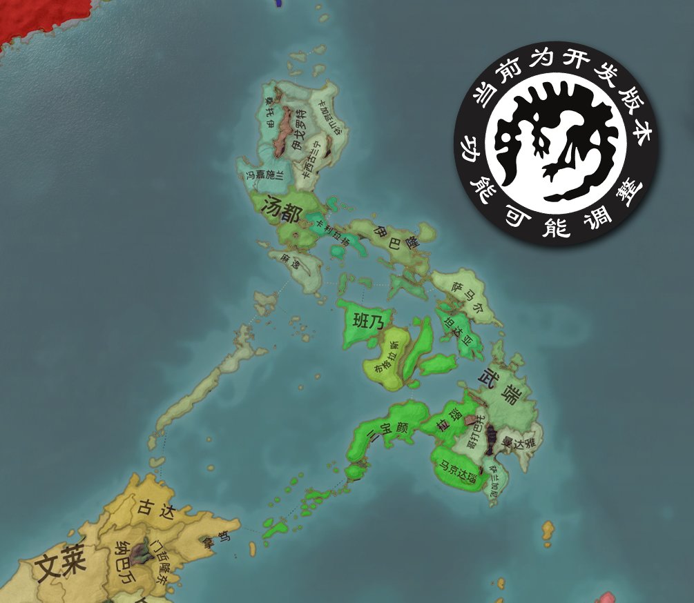[開發中的曼荼羅地圖模式,標明誰可能接受朝貢提議]