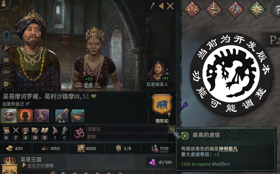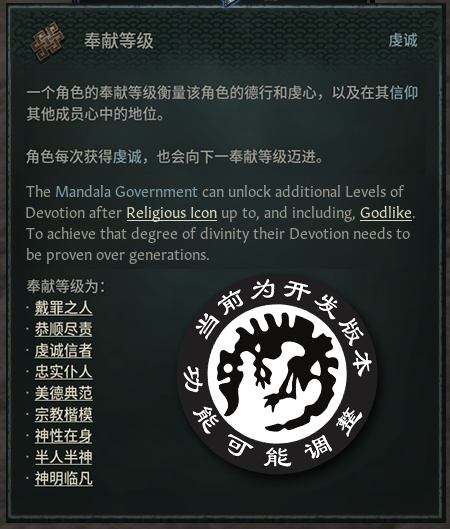 或者更實際的說:如果角色達到一個新的虔誠等級,繼承人將獲得一個增益效果,使其能夠晉升到下一個虔誠等級,依此類推,一直持續到建立起神明臨凡的角色世系。