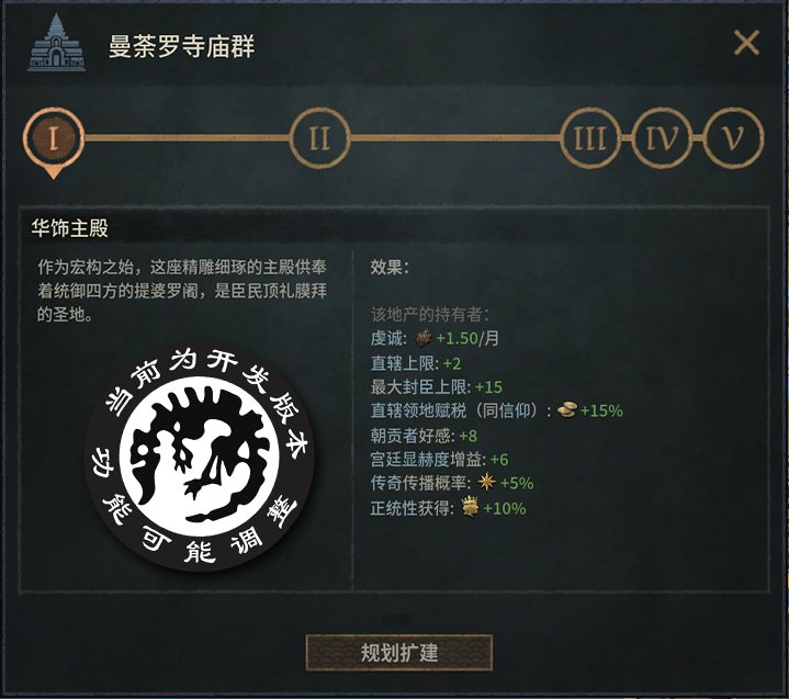 當然,只有曼荼羅制領主才能享受此類建築的效果。如果不再是曼荼羅制,或者該建築落入封建制/部落制的手中,除了旅遊景點外,幾乎沒別的用途。