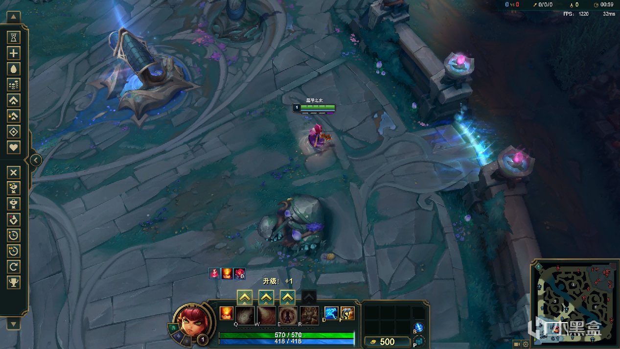 1080P 预设低画质 安妮门牙塔附近行进 1220FPS,英雄联盟真的是给低配置造福了。感觉腾讯在游戏的选择上,真的是让大家都能玩到一块,CF、LOL、瓦罗兰特这些都是。什么样的配置都能往一起玩。