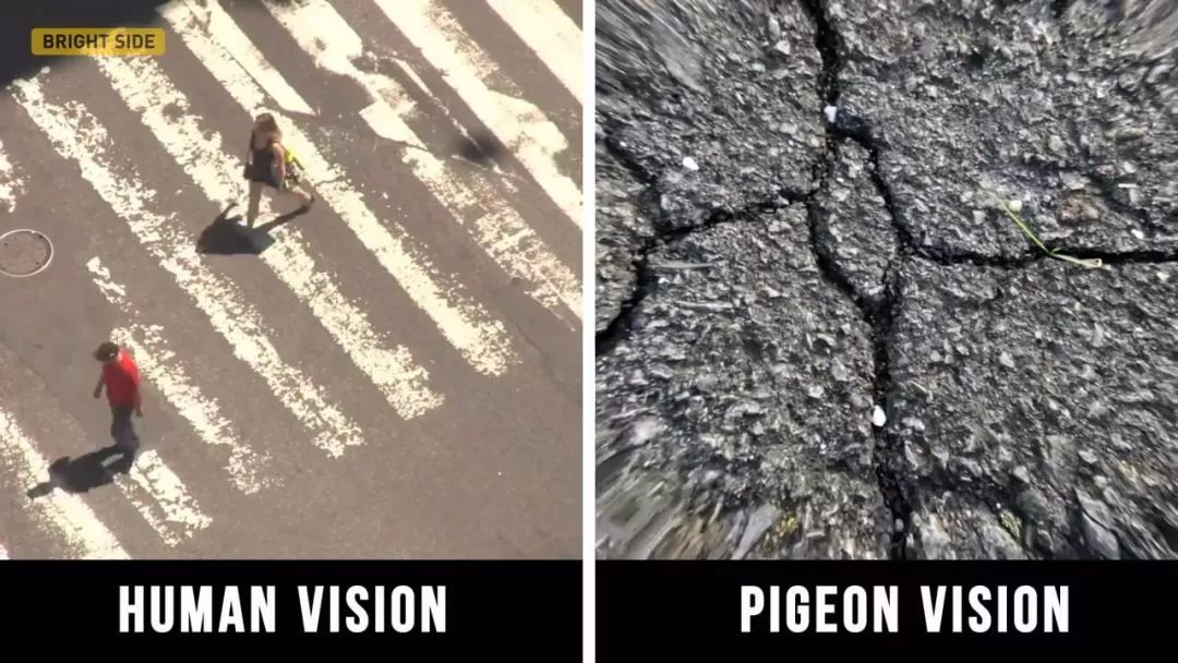 也有独特的视觉,他们能看到所有细微的细节。我们可能只看到一条路,但鸽子可以区分所有最小的水泥裂缝。他们的视力就像放大镜一样。