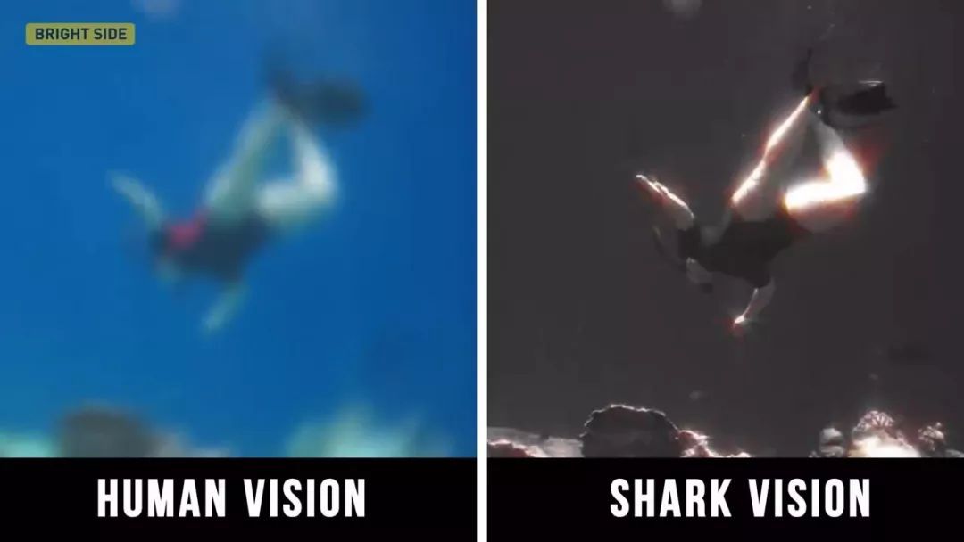 深海鱼在黑暗中很容易看见其他物体,例如鲨鱼根本分辨不出颜色,但在水下比我们看得清楚得多。